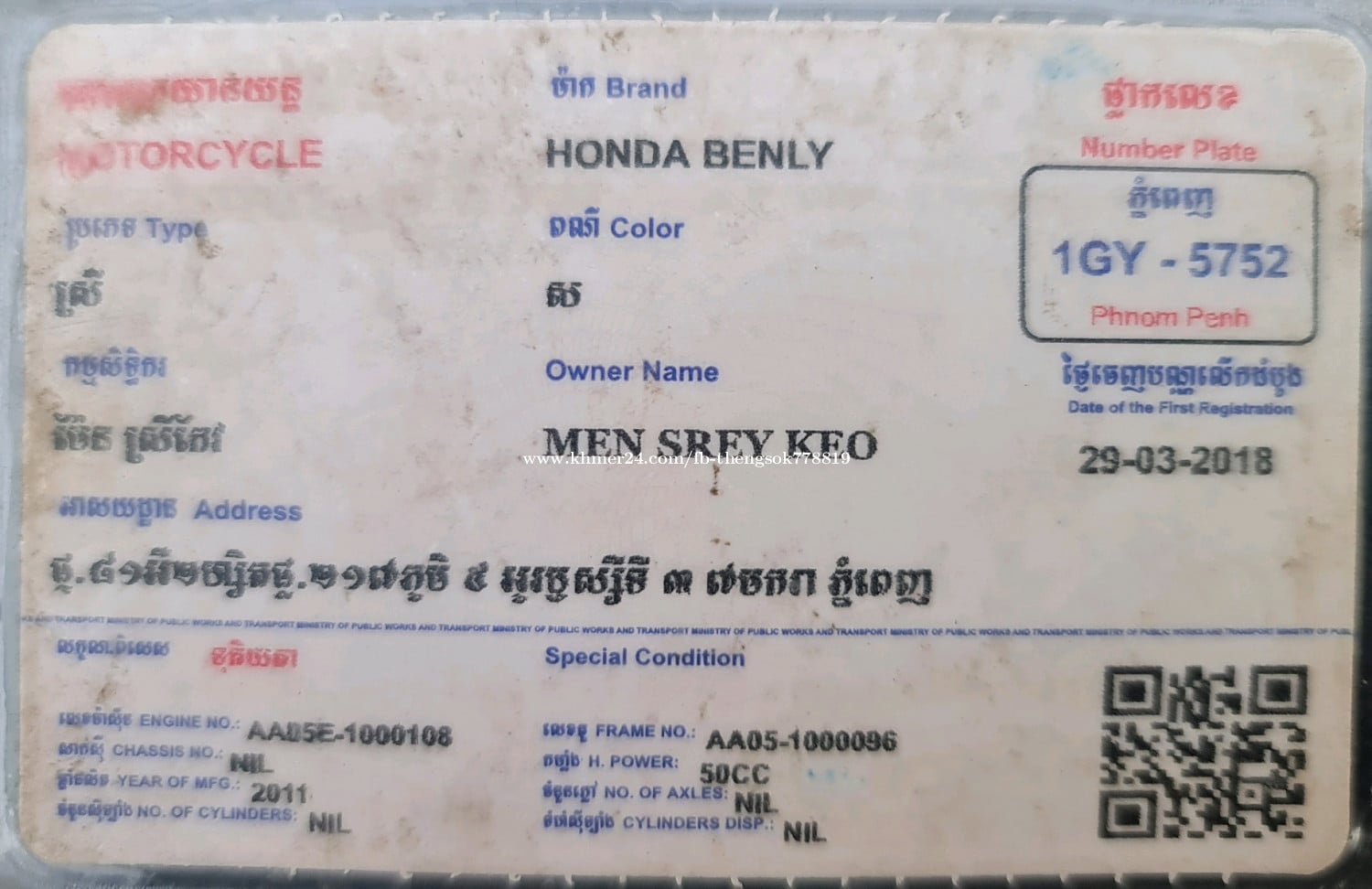 Honda benly50ccមានផ្លាកលេខកាតគ្រីត្រឹមត្រូវលក់តម្លៃចចារបាន 本田 benly50cc有正确证卡出售中 价格可以谈的 ☎️012832xxxClick To Call/016772xxxClick To Call/0885556xxxClick To Call🌐https://maps.app.goo.gl/YidJdDjYXeygsmxq6 Telegram 012832xxxClick To Call/016772xxxClick To Call