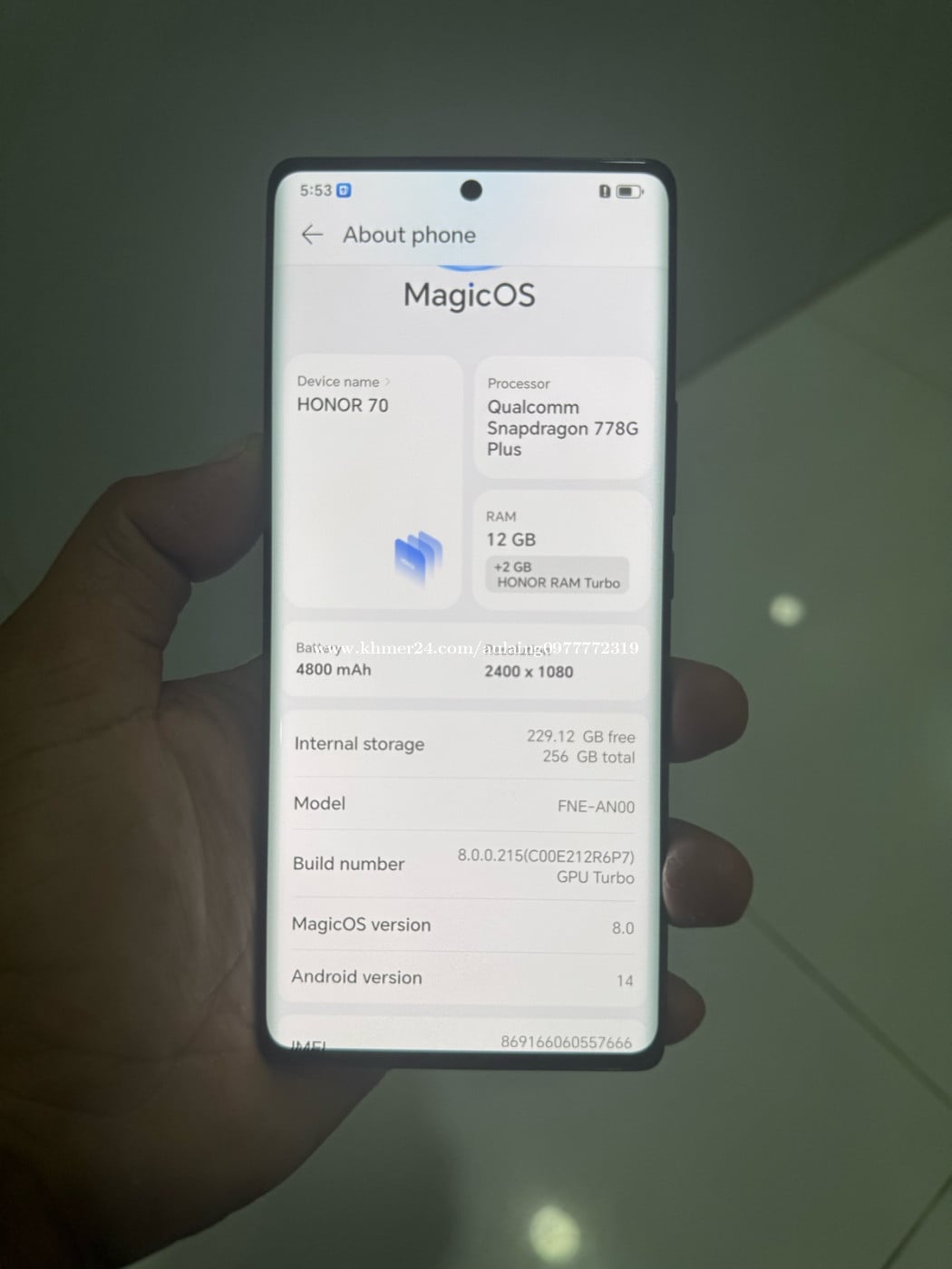 #Honor 70 12g/256g_CH #តម្លៃ $120 👉( វៃដូរបាន) ☎️016419xxxClick To Call/0977772xxxClick To Call___ស្ទឹងមានជ័យ 👉https://t.me/moeungnuon (Telegram)