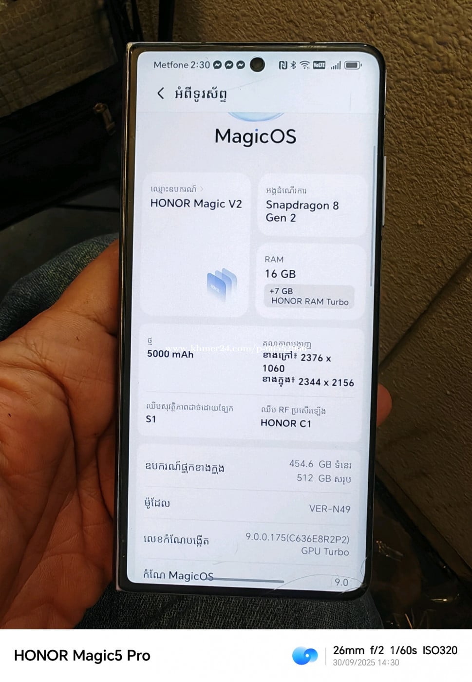 HONOR Magic V2 16g 512g ខូចក្នុងក្រៅបែកបន្តិចក្រុមហ៊ុនតម្លៃល្អ។240$ 070448xxxClick To Call/066552xxxClick To Call