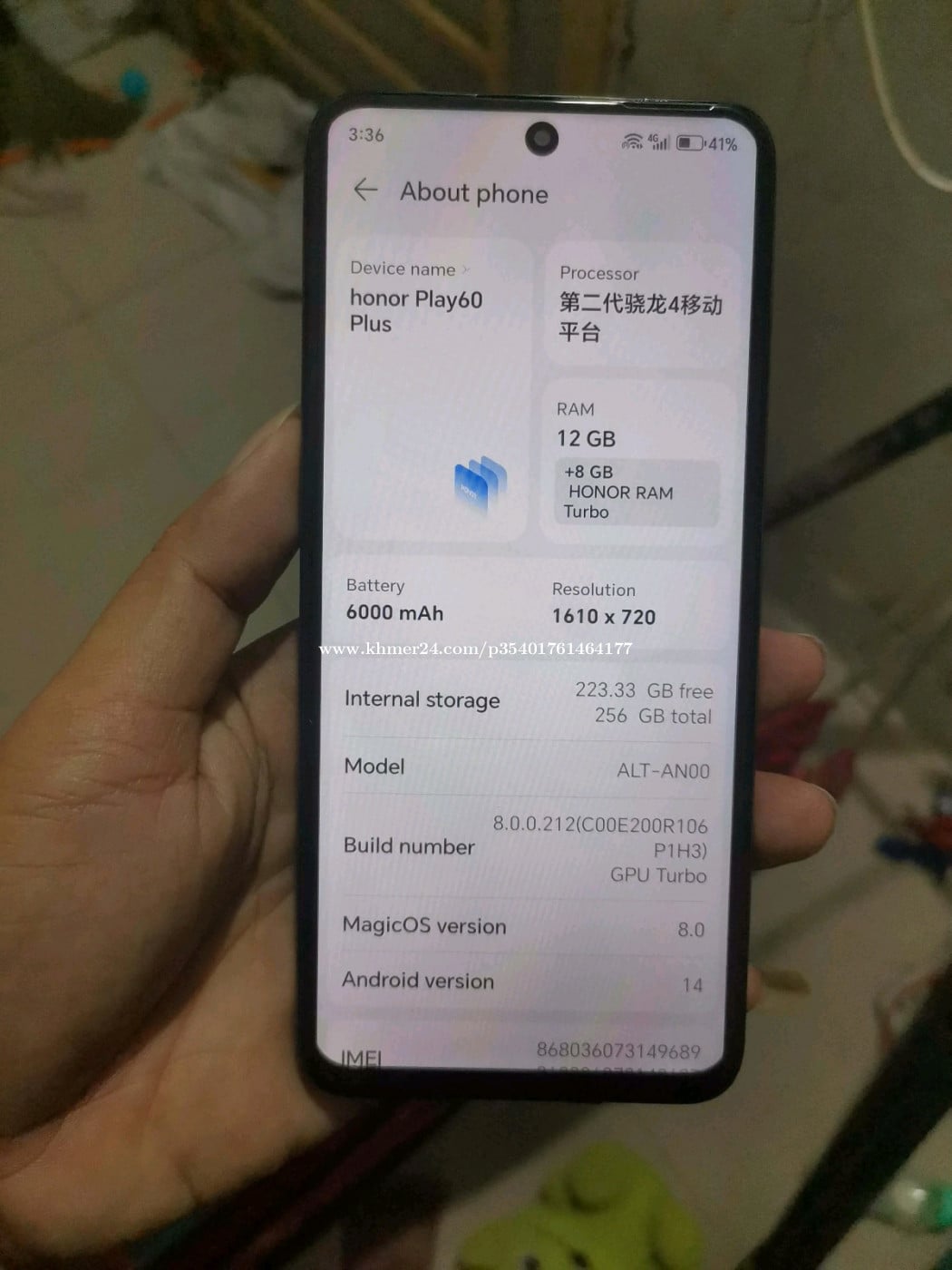Honor play 60 plus Ram 12 256 98.99% ទូរសព្ទសំណុំស៊ីនស្អាតកាមេរ៉ាច្បាស់មុខក្រោយអេក្រង់ 120Hz មកកាន់ខ្លាំងលក់ 79$ 093323xxxClick To Call