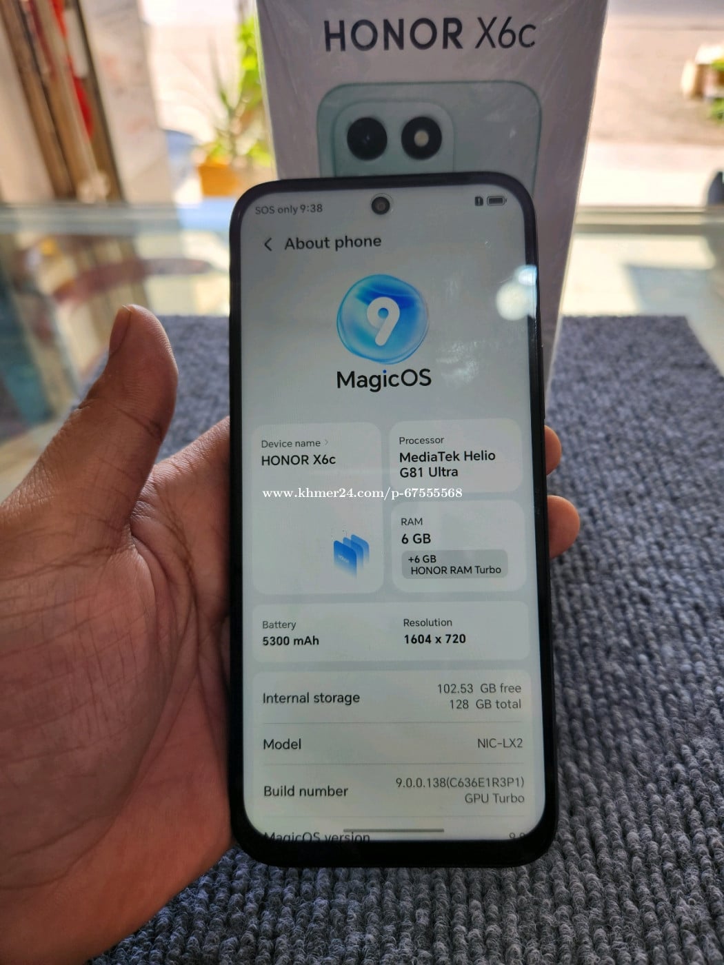 Honor x6c ពណ៍ ខ្មៅ ១ទឹក Ram6G+6G memory 128G ស្អាត 99.99% មានប្រអប់គ្រឿងកំភ្លេ និង មានធានាពីក្រុមហ៊ុន Tel:099997xxxClick To Call/067555xxxClick To Call