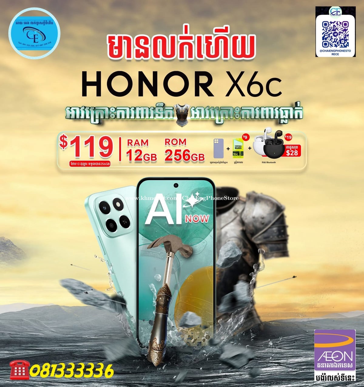 Honor X6c 6G+6G/256GB ថ្មីប្រអប់ធានាក្រុមហ៊ុន1ឆ្នាំតម្លៃពិសេសជូន