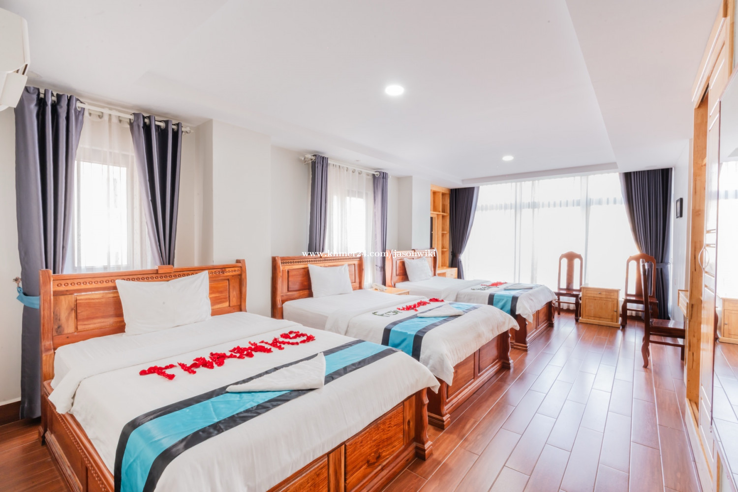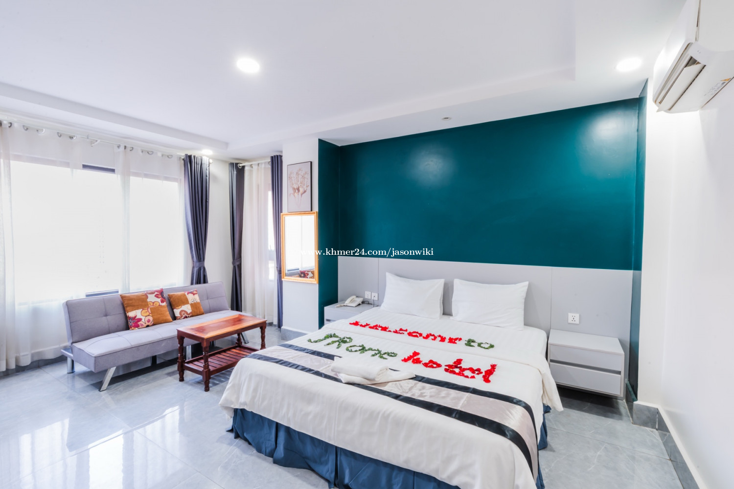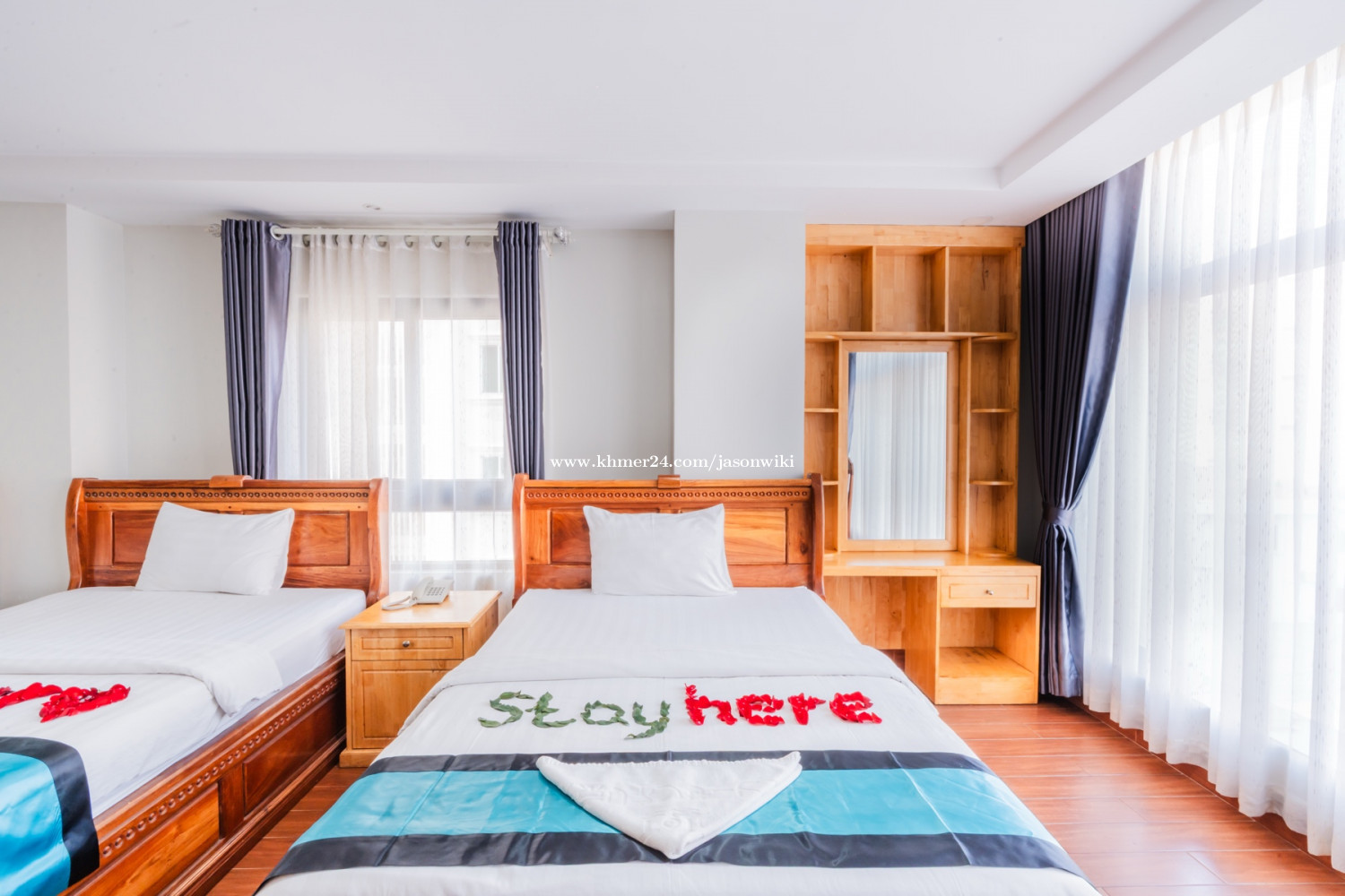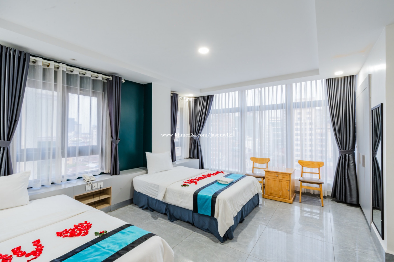 This is well located hotel in the heart of Phnom Penh , this hotel is fully furnished and in running condition. Hotel has 62 rooms , top floor has owner unit a beautiful penthouse to enjoy the city view. All the rooms are nice big clear and fully furnished. Double rooms 32 Twin 27 rooms Tripple 6 rooms 2 Owner unit. 14th floor has Skybar and resturant. Have elevator. Total 15 floors.