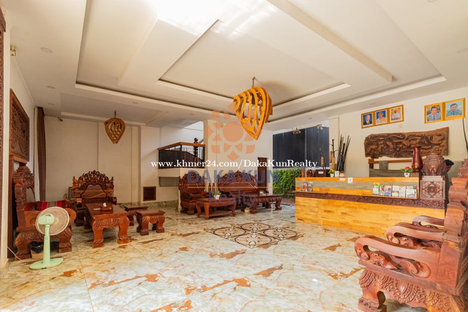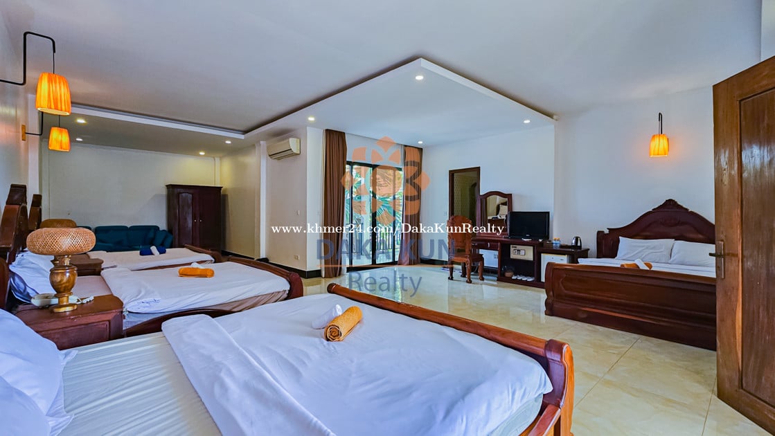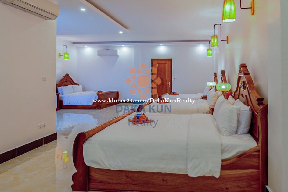 Contact Daka Kun Realty at 089899xxxClick To Call/012390xxxClick To Call ( WhatsApp & Telegram) or Email: inq****@dakakunrealty.comClick To Sent Email Property ID: DH332 Rental Price: USD 1,200 Per month • Total Land Size: 1,678 sqm • 17 Bedrooms and 18 Bathrooms • Lobby and Swimming Pool • Restaurant and Kitchen • Semi-Furnished • Parking Space • Location: Sangkat Sala Kamreuk, Siem Reap City —---------------------------------------------------------------------------- More option: www.dakakunrealty.com Telegram channel ---> https://t.me/dakakunrealty Real Estate Agent: Yeun Sam Ath Nr: R-21-381-01
