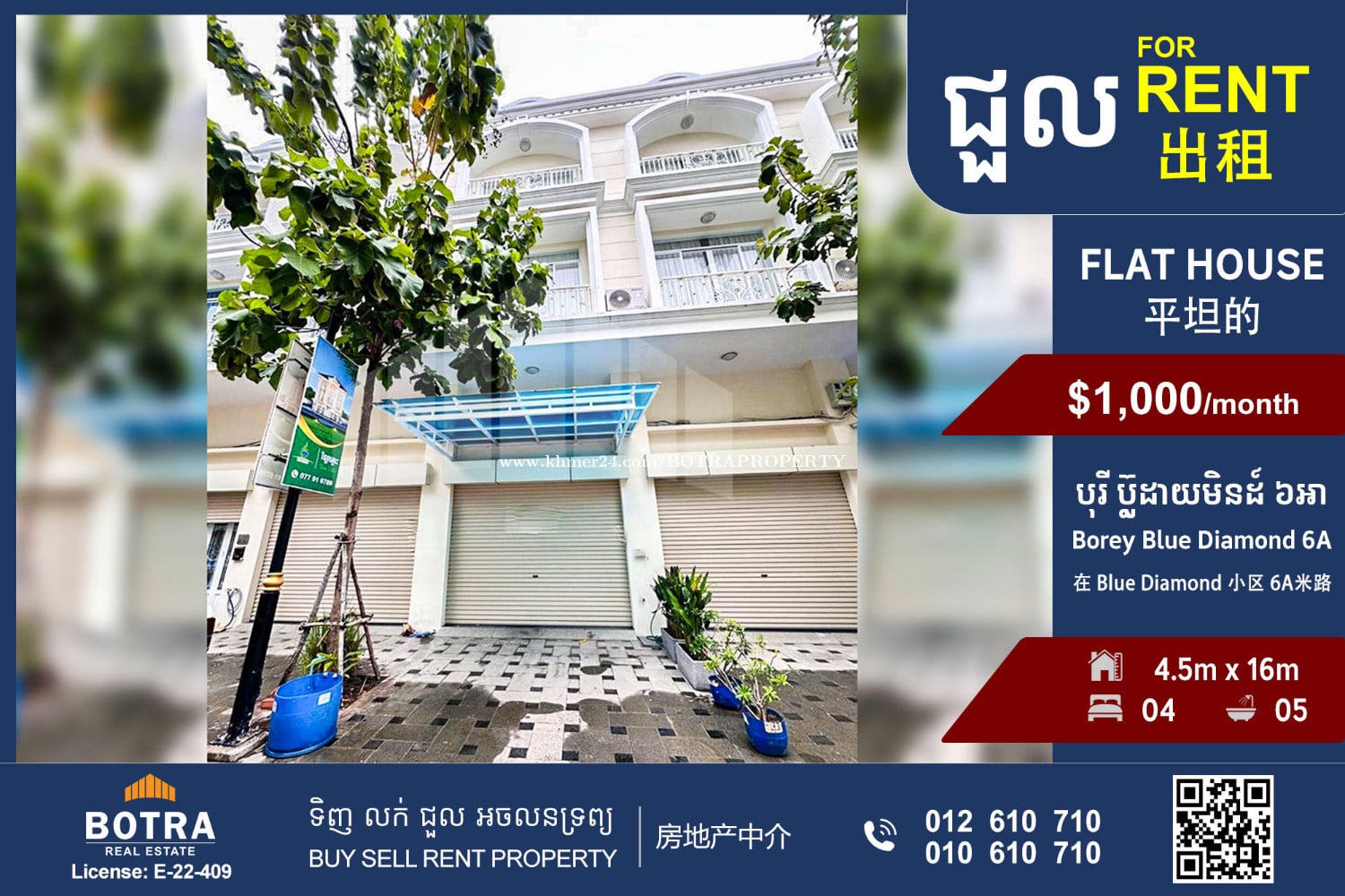 ๐ก House for Rent #P1273 ๐ Borey Blue Diamond 6A ๐ Price: $1,000/month (nego) - Size: 4.5m x 16m - Bedrooms: 4 | Bathrooms: 5 - Fully Furnished โโโโโโโโโ Contact us now ๐ 012610xxxClick To Call (Cellcard) ๐ 010610xxxClick To Call (Smart) โถ๏ธ t.me/BotraRealEstate (Chat)