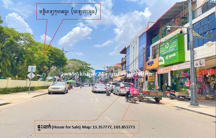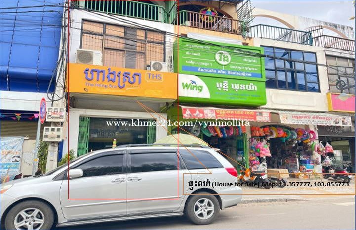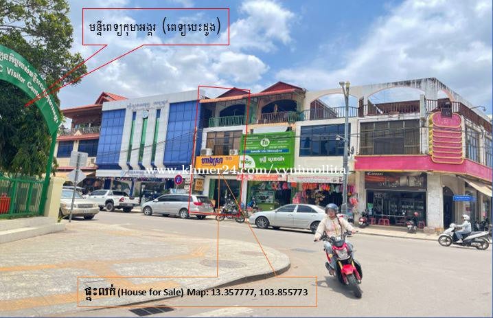 ទំហំ 4mX12m មានបីជាន់រាប់ពីជាន់ផ្ទាល់ដី សល់ដីខាងក្រោយ1m ទល់មុខពេទ្យកុមារអង្គរ