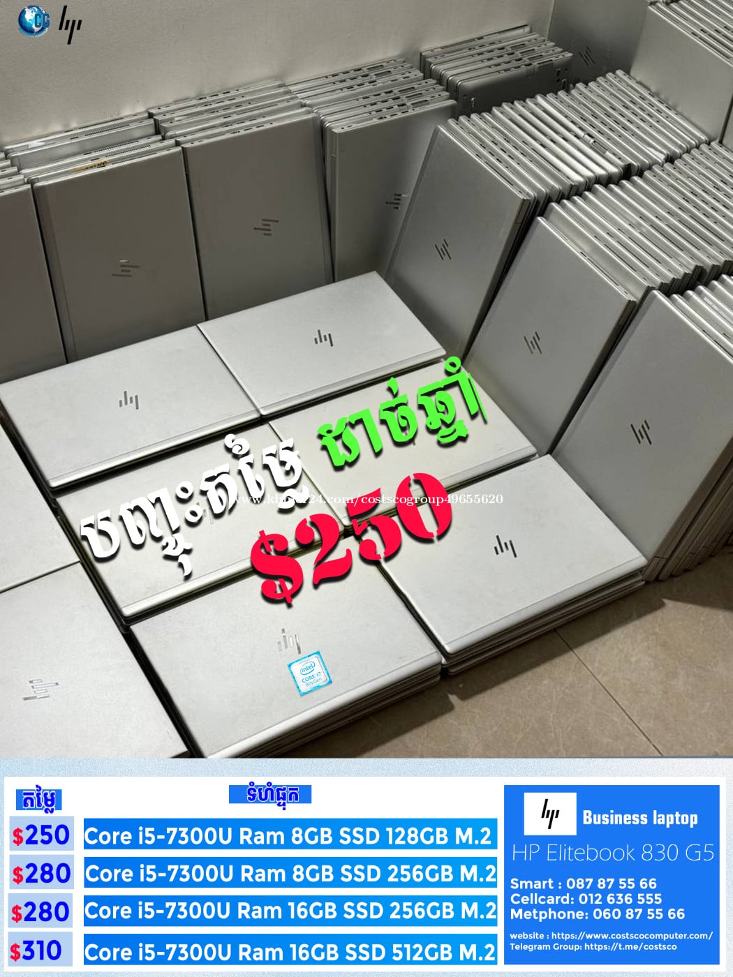 HP EliteBook 830 G5 & 840 G5 ប្រម៉ូសិនដាច់ឆ្នាំ HP EliteBook 830 G5 CPU : Core i5-7th vPro RAM : 8GB DDR4 Storage M.2 : 128GB Keyboard light 💡 Screen : 13.3-Inch FHD IPs (touch screen ) Os : Windows 10/11Pro License តម្លៃធូ$250 ——————— HP EliteBook 830 G5 CPU : Core i5-7th vPro RAM : 8GB DDR4 Storage M.2 : 256GB Keyboard light 💡 Screen : 13.3-Inch FHD IPs (touch screen ) Os : Windows 10/11Pro License តម្លៃធូ$270 ——————— HP EliteBook 830 G5 CPU : Core i5-7th vPro RAM : 16GB DDR4 Storage M.2 : 512GB Keyboard light 💡 Screen : 14-Inch FHD IPs Os : Windows 10/11Pro License តម្លៃធូ$299 -------------------- ទីតាំង ផ្លូវលេខ ១៥០ សង្កាត់ទឹកល្អក់២ ខណ្ឌទួលគោក រាជធានីភ្នំពេញ 🛍 ទីតាំងហាង : https://maps.app.goo.gl/Prt6N1Kzq3vEpfCHA 💬𝗧𝗲𝗹𝗲𝗴𝗿𝗮𝗺: ✅Telegram Chat: https://t.me/costscocomputer ☎️ Smart : 087875xxxClick To Call Telegram ☎️ Cellcard: 012636xxxClick To Call ☎️ Metphone: 060875xxxClick To Call ----------------