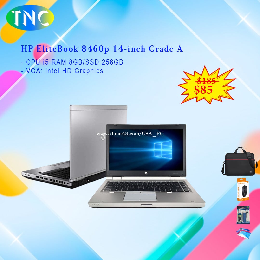 HP ProBook 640 G3 (7th Generation) Grade A Used in very good Condition Screen 14 inch Display Resolution 1920 x 1080 Core i5-7200U (4CPUs) 2.70GHz RAM 8GB SSD 256GB VGA: Intel HD Graphics 620 up to 4GB Camera, Keyboard Light, Wieless,DH Port, VGA Port, USB 3.0, Battery very good up to 4 hours Free Special: Mouse, Bag, Mousepad, Screen Cleaner Battery កាន់ជាង4ម៉ោង, ម៉ាសុីនធានារយៈពេល 6ខែ telegram: 010557xxxClick To Call