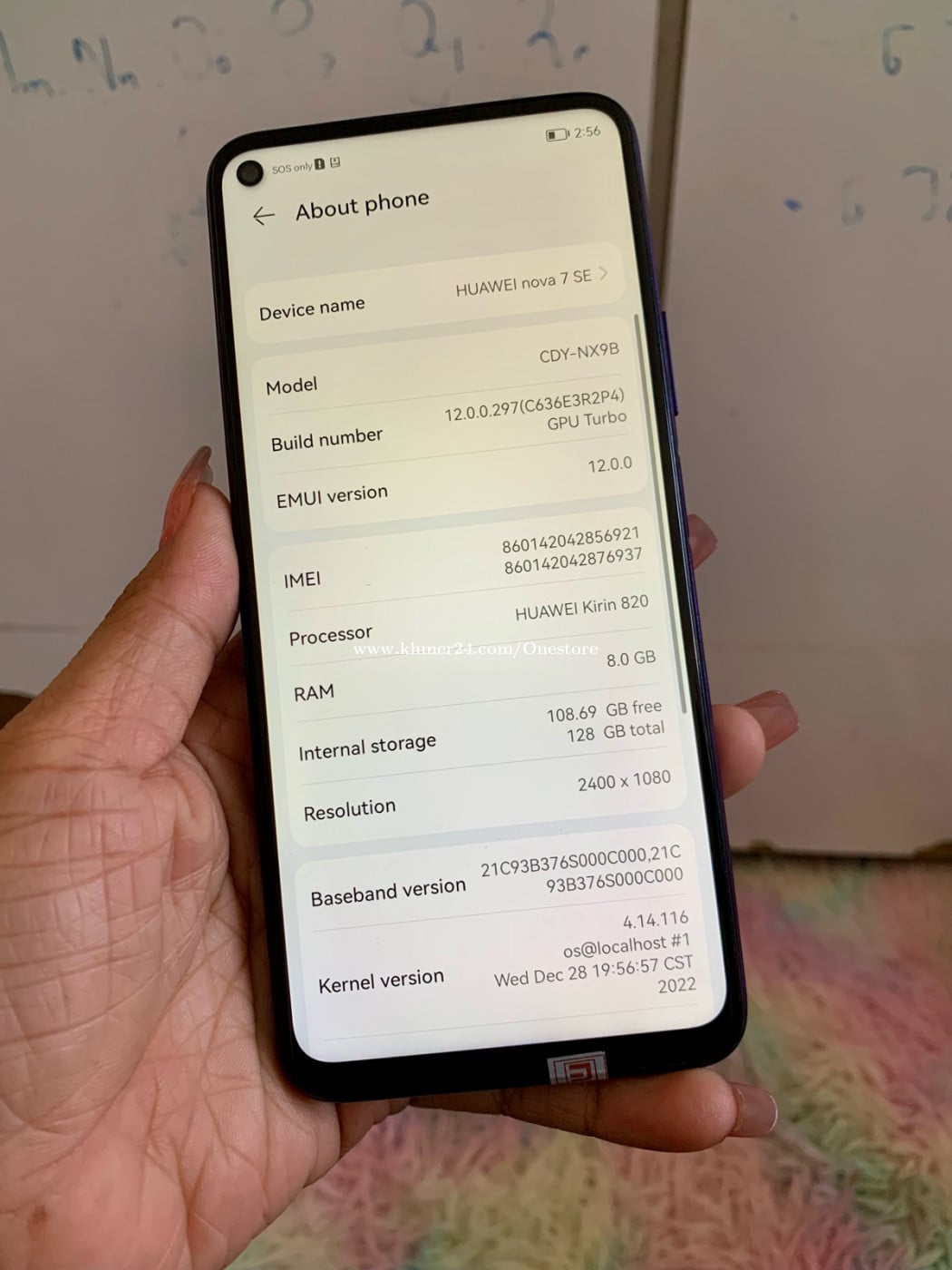 Huawei Nova 7se ក្រុមហ៊ុនសុំណុំសុីនសុីម ២ RAM 8GB memory 128GB CPU Kirin 820 មានឆ្នាំងសាក, ស្រោម, ស្គ្រីន តម្លៃ 80$