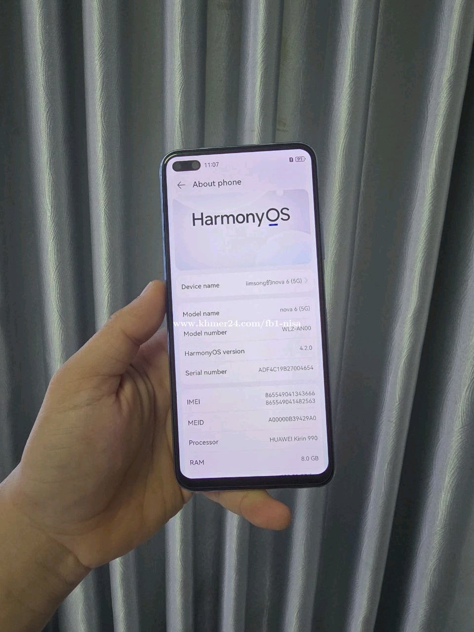 Huawei Nova6 5G Sim2 នៅស្អាត98% ថ្មកាន់អេក្រង់ច្បាស់ល្អសេវ៉ាខ្លាំង