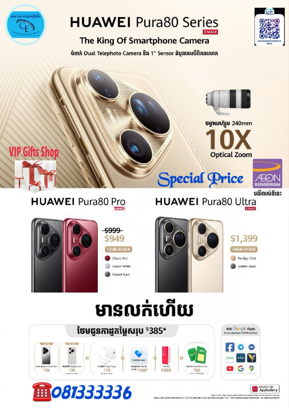 Huawei Pura80 Pro & Huawei Pura80 Ultra មកដល់ហើយ🔥 ✅ ហាងផ្តល់ជូនប្រូម៉ូសិនពិសេសណាស់✅ 👉 Pura80 Pro តម្លៃពិសេស 👉 Pura80 Ultra តម្លៃពិសេស 👉 ទិញក៏បាន | បង់រំលស់ក៏បាន | ប្រើVISA Cardក៏បាន 👉 មានសេវាកម្មដឹកជញ្ជូនដល់កន្លែងនិងផ្ញើរជូន25ខេត្តក្រុង សំរាប់ពត័មានបន្ថែមសូមទាក់ទងមកកាន់លេខទូរសព្ទ័ ☎️ 081333xxxClick To Call, 0762333xxxClick To Call, 017226xxxClick To Call, 067226xxxClick To Call 👉 Telegram Shop:☎️ 081333xxxClick To Call https://t.me/CE_PhoneShop តម្លៃពិសេសល្អមាននៅទីនេះ 🗳 សូមចុចលីង Channel Telegram : https://t.me/ChaiEngPhoneStoreCE ✅ Group Telegram: https://t.me/joinchat/LVrUvnFniQpkODBl 📍https://goo.gl/maps/KjDyGuoDN4dMjiah9 📍អាស័យដ្ឋាន ផ្ទះលេខ68BE0 ផ្លូវ215 នេរុហ៍ សង្កាត់វាលវង់ ខណ្ឌ័7មករា រាជធានីភ្នំពេញ។ នៅខាងជើងផ្សារដេប៉ូប្រហែល 500ម៉ែត្រ #ChaiEngPhoneShop #CE #ChaiEngPhoneStore2 #HUAWEIPura80Ultra #HUAWEIPura80Pro