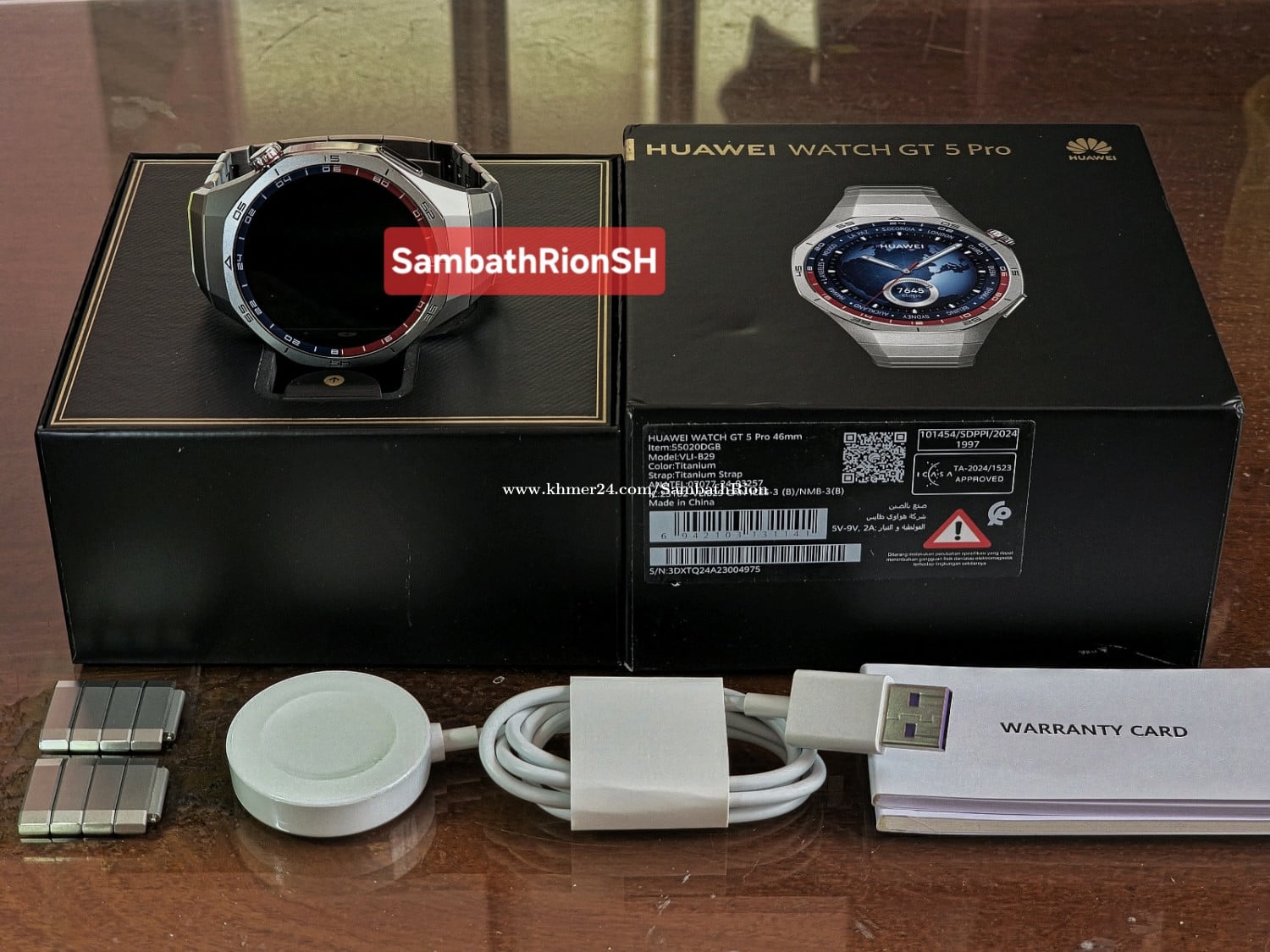 Huawei Watch GT5 pro Titanium 99% ( នៅដូចថ្មី ) គ្មានស្នាមឆ្នូត ពាក់នៅស្អាតថ្លៃថ្នូរ។ អត់សូវបានពាក់ ព្រោះមាននាឡិកាផ្សេង។ Free x2 screen protector (6$ free)