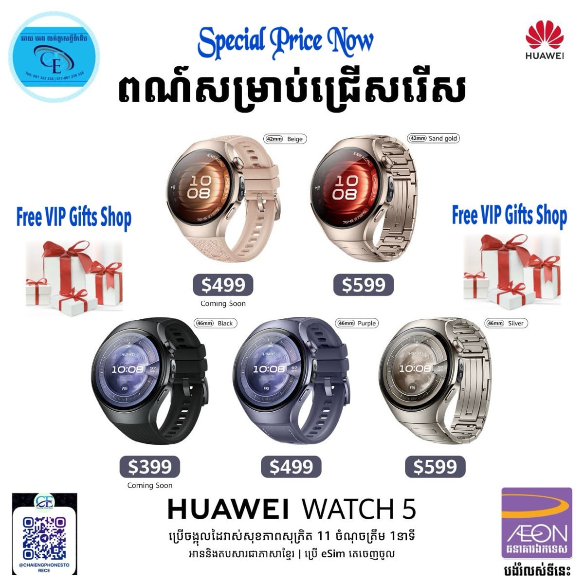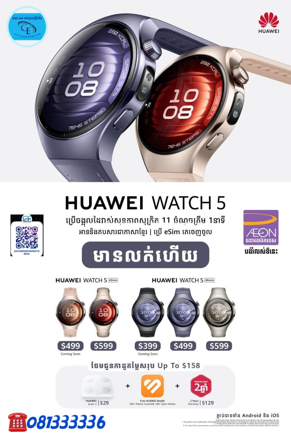 Huawei Watch5 Series មានលក់ហើយ!!! 🔥 ហាងផ្តល់ជូនប្រូម៉ូសិននិងតម្លៃពិសេសជូន🔥 👉 ទិញក៏បាន | បង់រំលស់ក៏បាន | ប្រើVISA Cardក៏បាន 👉 មានសេវាកម្មដឹកជញ្ជូនដល់កន្លែងនិងផ្ញើរជូន25ខេត្តក្រុង សំរាប់ពត័មានបន្ថែមសូមទាក់ទងមកកាន់លេខទូរសព្ទ័ ☎️ 081 333336, 076 2333336, 017 226338, 067 226338 👉 Telegram Shop:☎️ 081333xxxClick To Call https://t.me/CE_PhoneShop តម្លៃពិសេសល្អមាននៅទីនេះ 🗳 សូមចុចលីង Channel Telegram : https://t.me/ChaiEngPhoneStoreCE ✅ Group Telegram: https://t.me/joinchat/LVrUvnFniQpkODBl 📍https://goo.gl/maps/KjDyGuoDN4dMjiah9 📍អាស័យដ្ឋាន ផ្ទះលេខ68BE0 ផ្លូវ215 នេរុហ៍ សង្កាត់វាលវង់ ខណ្ឌ័7មករា រាជធានីភ្នំពេញ។ នៅខាងជើងផ្សារដេប៉ូប្រហែល 500ម៉ែត្រ #ChaiEngPhoneShop #CE #ChaiEngPhoneStore2 #HuaweiWatch5Series #huaweiwatch5series