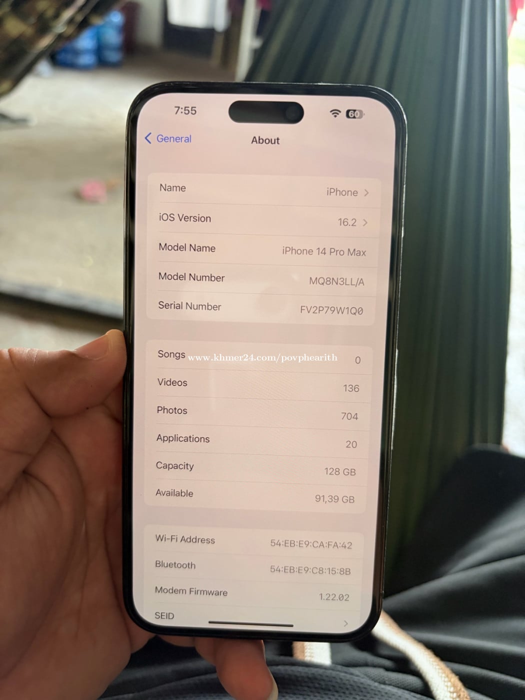 I phone 14 Pro Max 128G Model LL/A black តួនៅស្អាត97% ធានាOriginal អាចចចារបានតិចតួច បងប្អូនមានតម្រូវការអាចCall ឬChatតាមតេឡេក្រាម