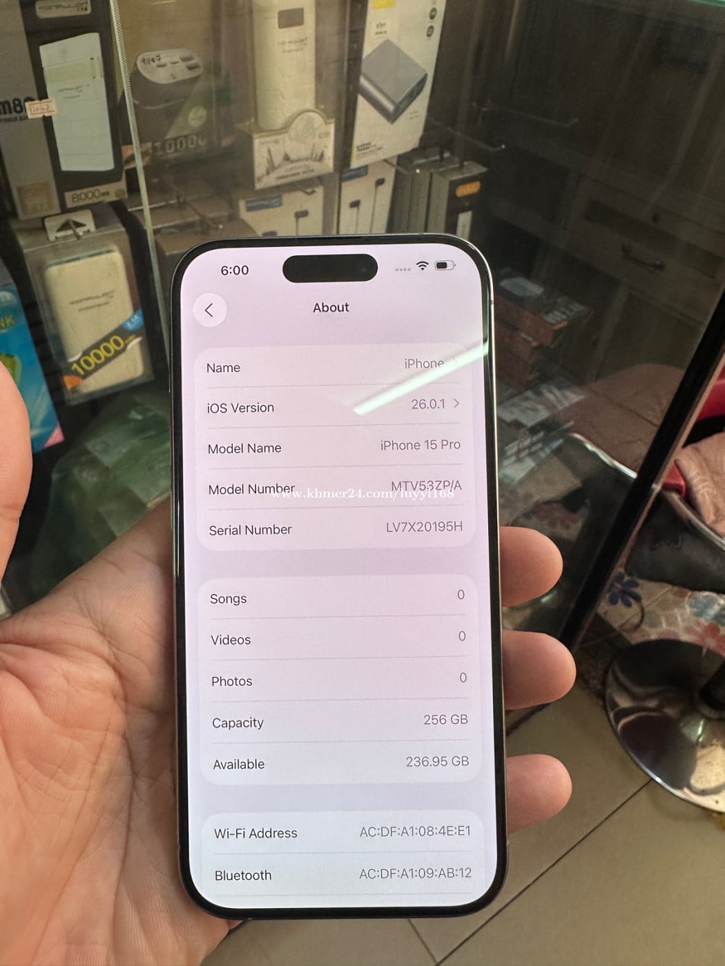 I phone 15 pro 256g ZP ស្អាត99% ថ្ម92% លក់640$