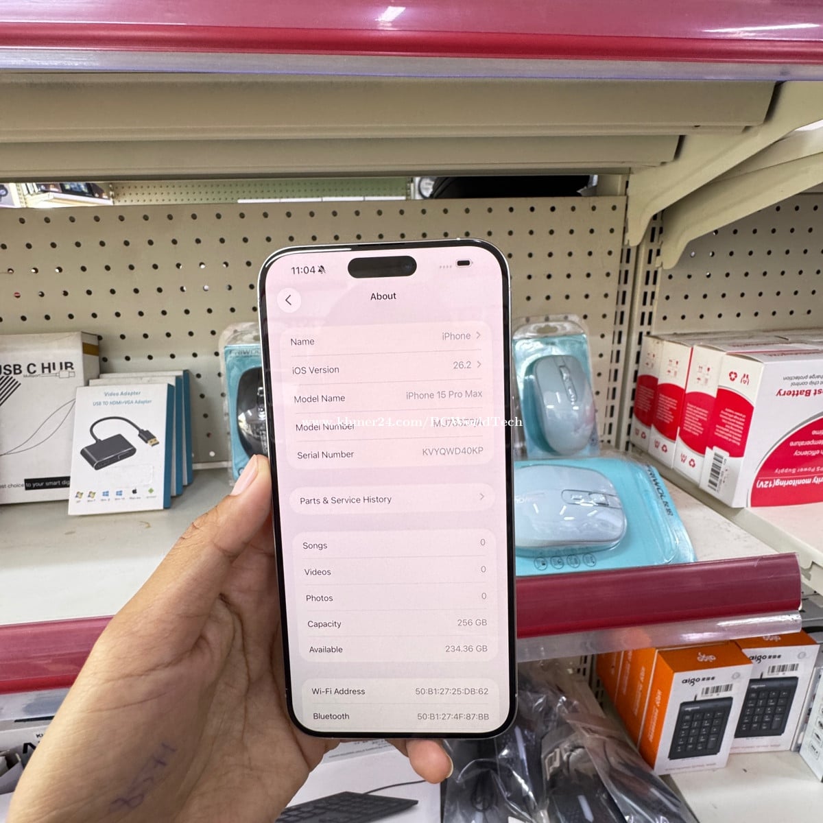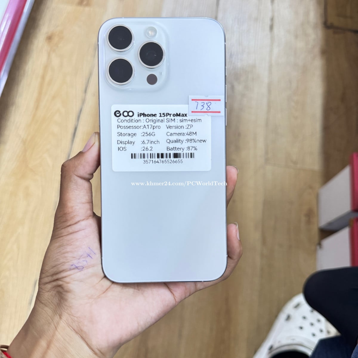 I Phone 15Pro Max Condition Original Possession A17Pro Storage 256G Display 6.7inch IOS 26.2 SIM Sim +esm Version ZP Quality 98% Battery 87%