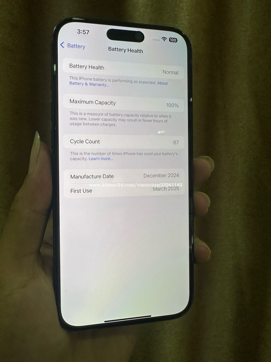 I Phone 16 Pro Max 256g X/A ប្រភេទអីវ៉ាន់សំណុំសុីន មិនធ្លាប់ជួសជុល Condition: 99% Battery: 100% Price: 990$ Location: Sovan Phone Shop Telegram: 086963xxxClick To Call