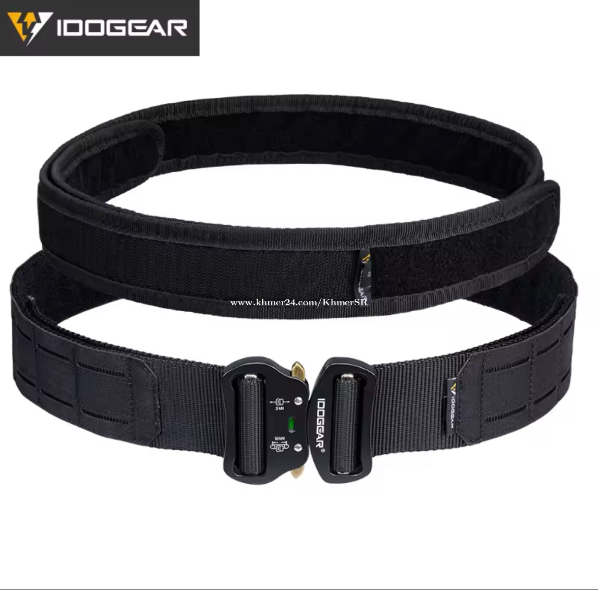 Idogear Tactical Belt Quick Release Metal Buckle MOLLE Laser Cut Mens Belts ខ្សែរក្រវ៉ាត់ ប្រយុទ្ធ អងរក្ស រឺជាង ប្រើបាន ថ្មីមិនទាន់ប្រើ