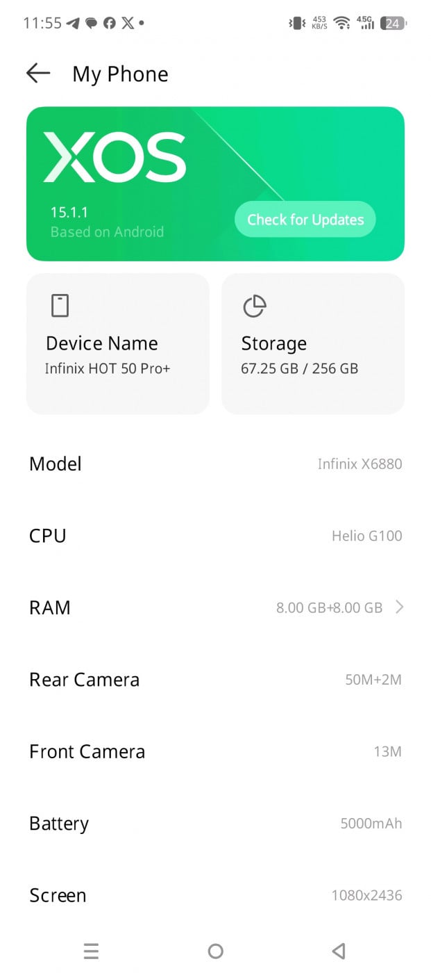 Infinix Hot 50 Pro+ Black color condition 99% RAM 16GB (8GB+8GB) Memory 256GB