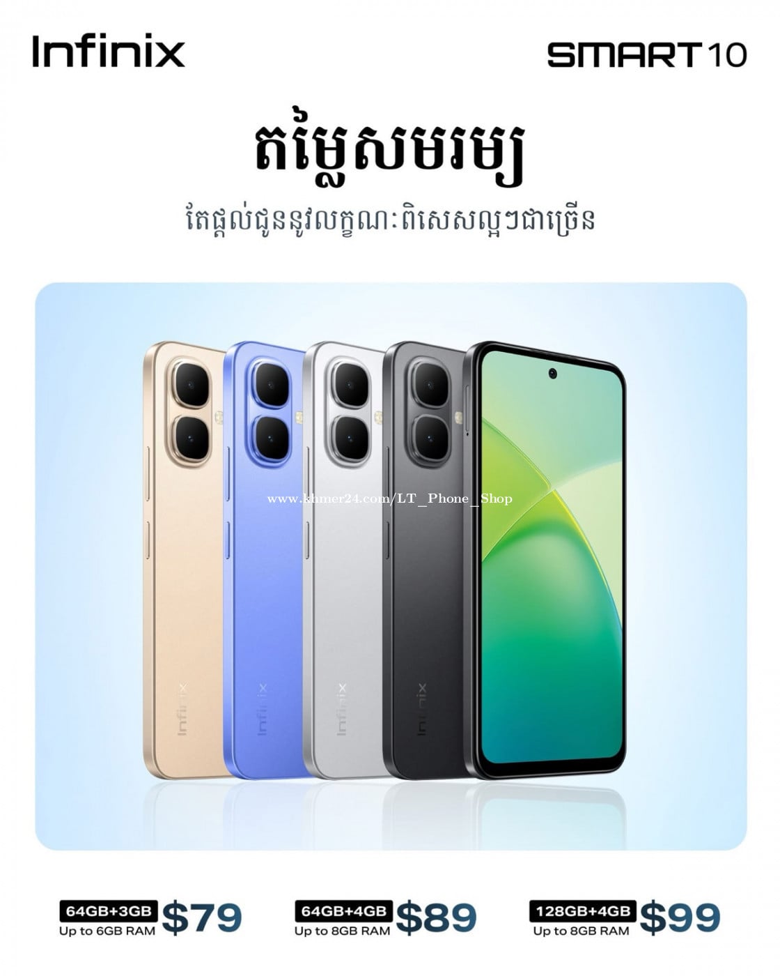 📱✨ Infinix Smart 10 រូបរាងស្អាត តំលៃសមរម្យ និងសមត្ថភាពខ្ពស់ 🔊 (3GB+3GB/64GB) តំលៃ 79$ បញ្ចុះតំលៃនៅសល់ត្រឹមតែ $74 🔊 (4GB+4GB/128GB) តំលៃ 99$ បញ្ចុះតំលៃនៅសល់ត្រឹមតែ $94 🟢 សមត្ថភាពពេញលេញជាមួយលក្ខណៈពិសេស 🤩 ✅ អេក្រង់ IPS LCD ទំហំ 6.67 អ៊ីញ HD+ / 120Hz ✅ RAM 3+3GB អង្គផ្ទុកទិន្នន័យ 64GB និង RAM 4+4GB អង្គផ្ទុកទិន្នន័យ 128GB ✅ កាមេរ៉ាក្រោយ 8MP កាមេរ៉ាមុខ 8MP ✅ថ្ម 5000mA សាកថ្មលឿន 15W ✅ ធន់នឹងទឹក និងធូលី IP64 ✅ 300% ធុងបាសពីរ ✅ស្កែនក្រយៅដៃចំហៀង ✅ XOS 15.1 ផ្អែកលើប្រព័ន្ធប្រតិបត្តិការ Android 15 🏡 ហាងលក់ទូរស័ព្ទដៃទំនើប អិលធី 📲 ទំនាក់ទំនងលេខទូរស័ព្ទ: 016711xxxClick To Call (Telegram) / 099333xxxClick To Call / 0888884xxxClick To Call 📩 Telegram: https://t.me/LTPhoneShop 📬 Facebook Page: https://www.facebook.com/share/165XEwR2ZA/?mibextid=wwXIfr 🗺️ ផ្ទះលេខ139c, ផ្លូវលេខ143 កែងផ្លូវលេខ376, សង្កាត់បឹងកេងកង3, ខណ្ឌបឹងកេងកង, រាជធានីភ្នំពេញ 📍Google map: https://maps.app.goo.gl/phENGCSAT33SaM9r7?g_st=com.google.maps.preview.copy 🛵 មានសេវាដឹកជញ្ជូនគ្រប់ខេត្តក្រុងរាជធានី