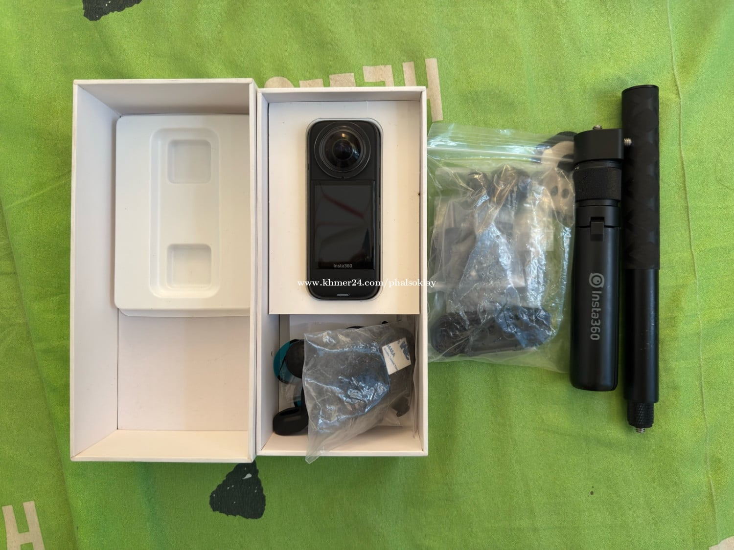 កាមេរ៉ា Insta 360 x3 មួយទឹក ស្អាតដូចថ្មី ថតរូបក៏បាន ថតវីឌីអូក៏បាន ទំហំ 48 មេកាភិចសែល សេនសឺ ការពារជម្រាបទឹក ថតបាន 4K វីឌីអូ