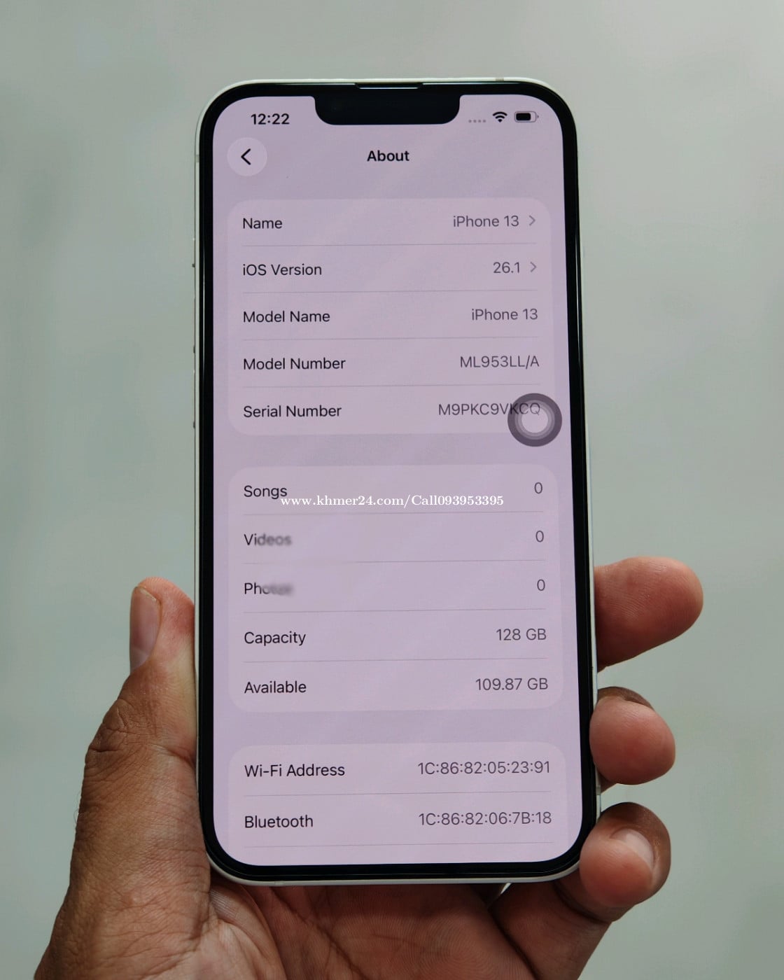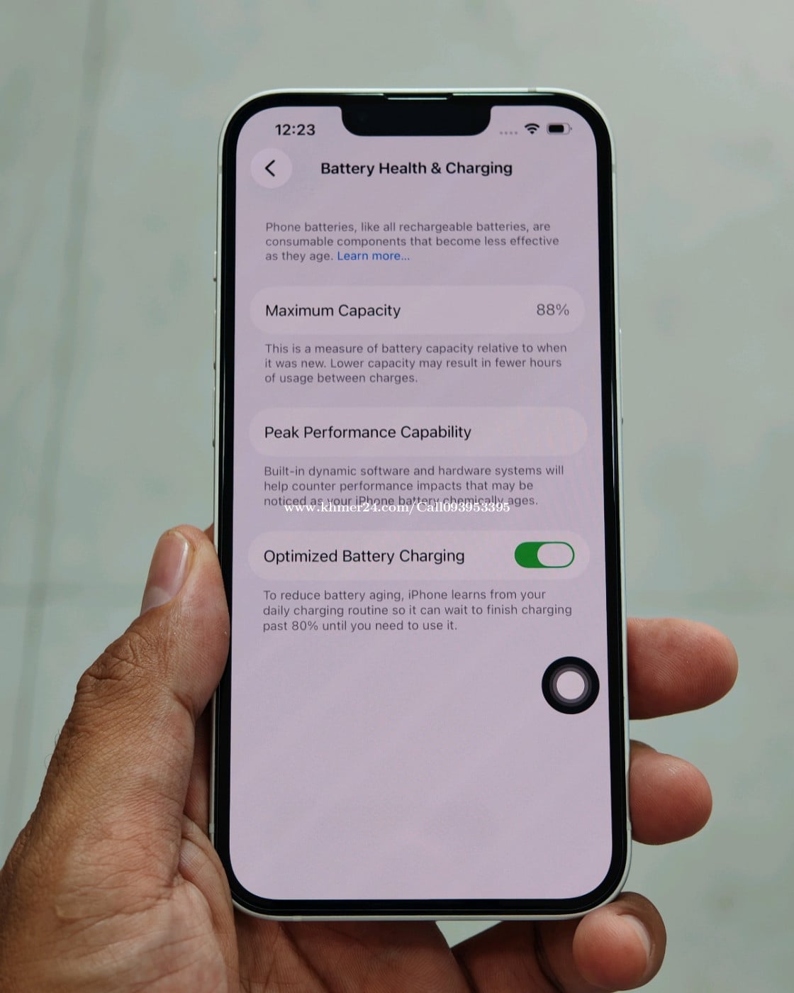 iP 13 LL/A 128G ថ្មខ្ពស់ តួស្អាត សំណណែន មិនធ្លាប់ជួសជុល មានស្គែនមុខ មានតែទូរស័ព្ទ។ អ្នកត្រូវការអីវ៉ាន់ស្អាតមកមើលដឹងតែពេញចិត្ត Telegram 093953xxxClick To Call
