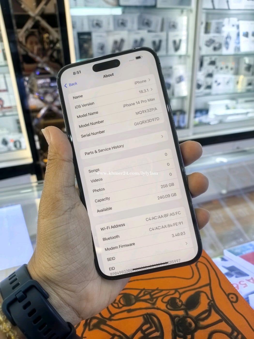 IP 14promax 256GB=465$ ZP សុីនស្អាត ថែមដំសាកខ្សែសាកសុីន case screen