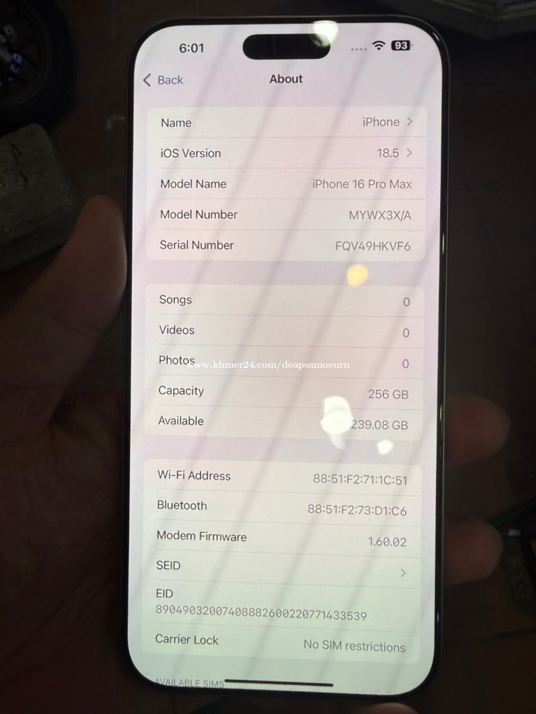 #IP 16pro max X/A Sim-Esim 256g (8XX$) @សានុំស្អាត99% battery100% មានឆ្នាំងសាក @ទូរស័ព្ទ៖ 012911xxxClick To Call/0717111xxxClick To Call