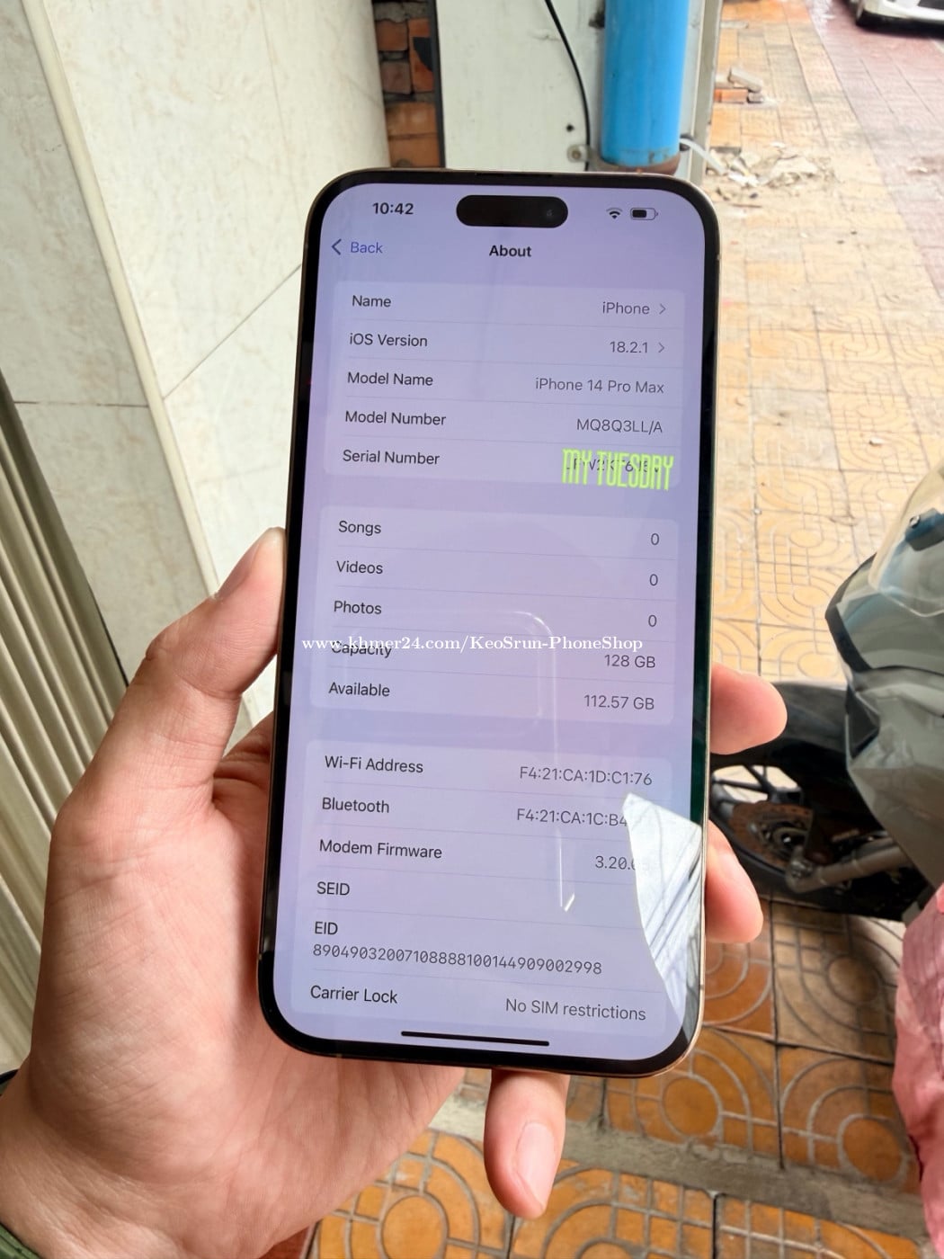 iPhone 14 Pro Max LL/A ESIM 128g សានុំណែន ថ្មសុីន88% ស្អាត99% តម្លៃ 499$ Telegram: 087233xxxClick To Call