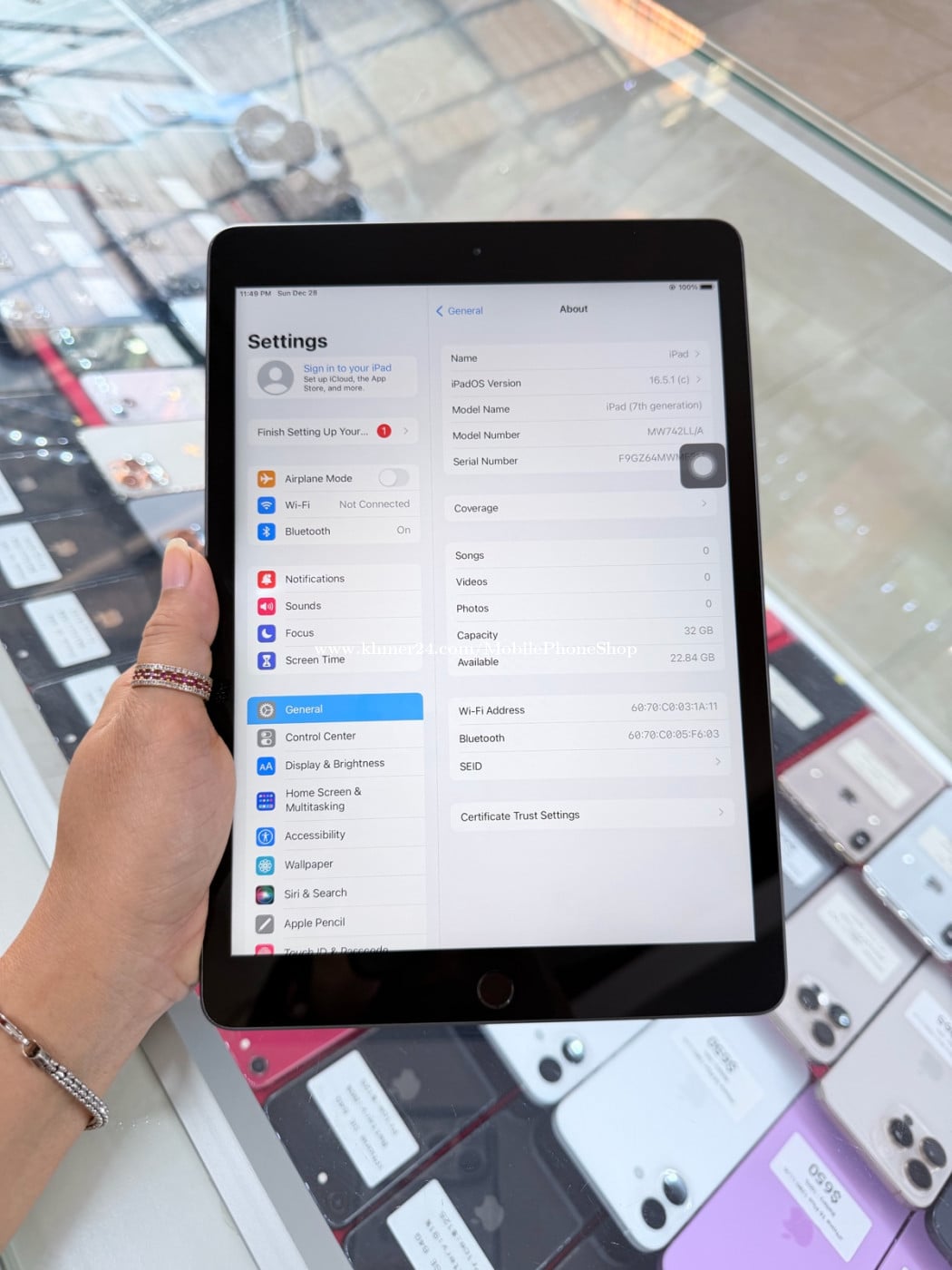 iPad 7th Generation 32G Wi-Fi only មួយទឹកអាមេរិក តម្លៃ : $85 (តម្លៃមិនចចារ) Free: ឆ្នាំងសាក,ស្រ្គីន (ធានា១សប្ដាហ៍) ទីតាំង: ផ្លូវ160 , ស្តុបទេពផន , ភ្នំពេញ 📲Tel: 098200xxxClick To Call 📍Maps: https://maps.app.goo.gl/8YoH7dAZ6D2egm9v7?g_st=ic