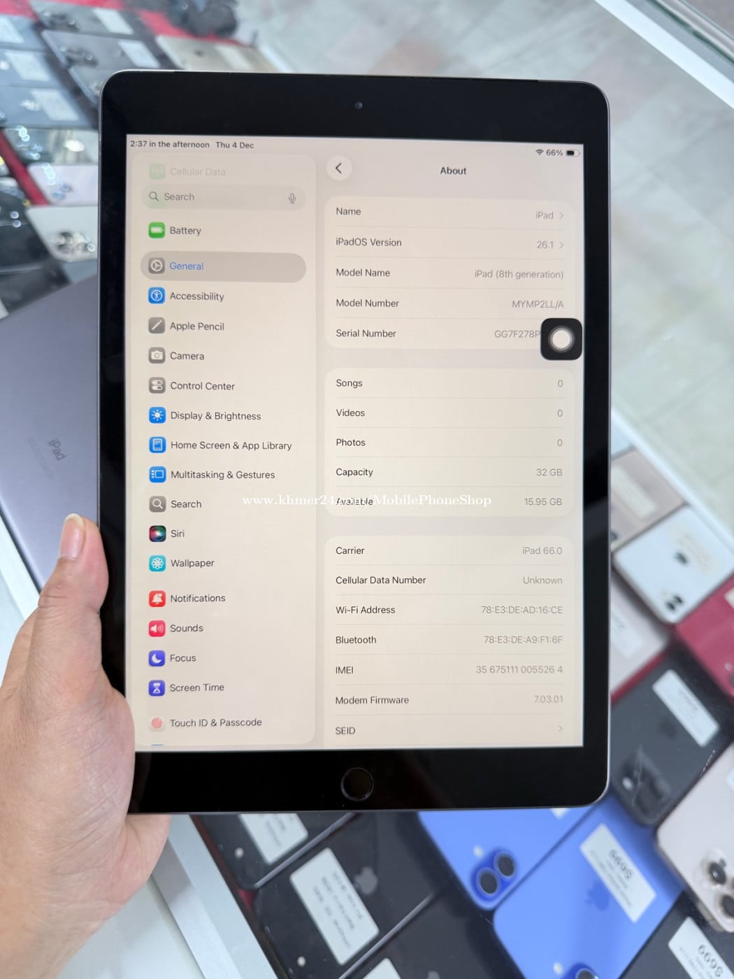 iPad 8th generation 32G Bypass Wi-Fi មួយទឹកអាមេរិក តម្លៃ : $105 (តម្លៃមិនចចារ) Free: ឆ្នាំងសាក,ស្រ្គីន (ធានា១សប្ដាហ៍) ទីតាំង: ផ្លូវ160 , ស្តុបទេពផន , ភ្នំពេញ 📲Tel: 098200xxxClick To Call 📍Maps: https://maps.app.goo.gl/8YoH7dAZ6D2egm9v7?g_st=ic