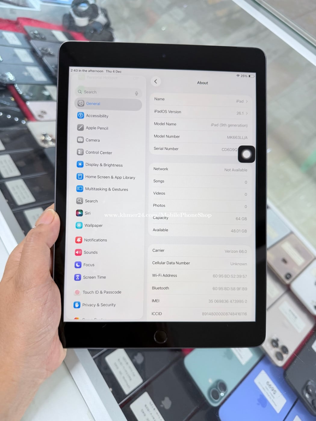 iPad 9th generation 64G Bypass Wi-Fi មួយទឹកអាមេរិក តម្លៃ : $135 (តម្លៃមិនចចារ) Free: ឆ្នាំងសាក,ស្រ្គីន (ធានា១សប្ដាហ៍) ទីតាំង: ផ្លូវ160 , ស្តុបទេពផន , ភ្នំពេញ 📲Tel: 098200xxxClick To Call 📍Maps: https://maps.app.goo.gl/8YoH7dAZ6D2egm9v7?g_st=ic