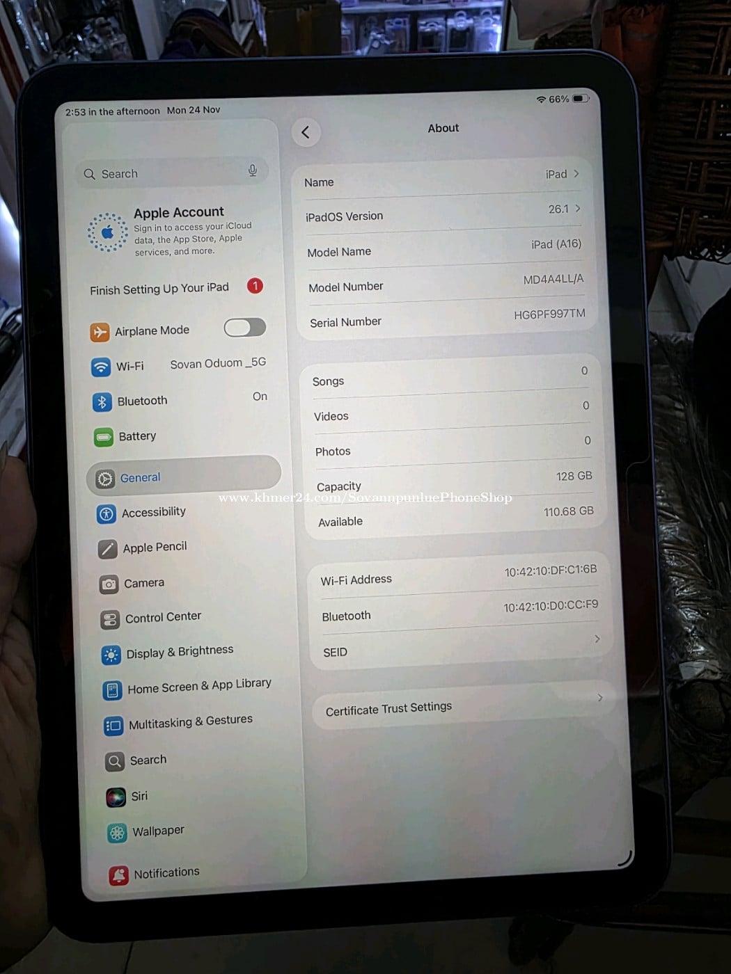 iPad 11th(A16) 2025 /128G 11"wifi ស្អាតធានាសំណុំហ្សីន ស្អាតធានាសំណុំហ្សីន ថតស្អាត internetលឿន លេងអត់ក្តៅ បងប្អូនណាចាប់អារម្មណ៍មាននៅហាងពេជ្រសុវណ្ណពន្លឺ សុវណ្ណឧត្តម tel: 081335xxxClick To Call/ 017553xxxClick To Call