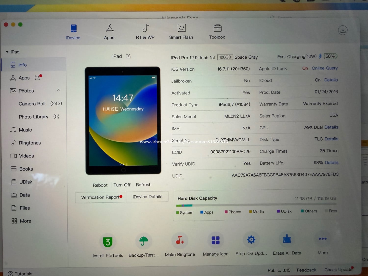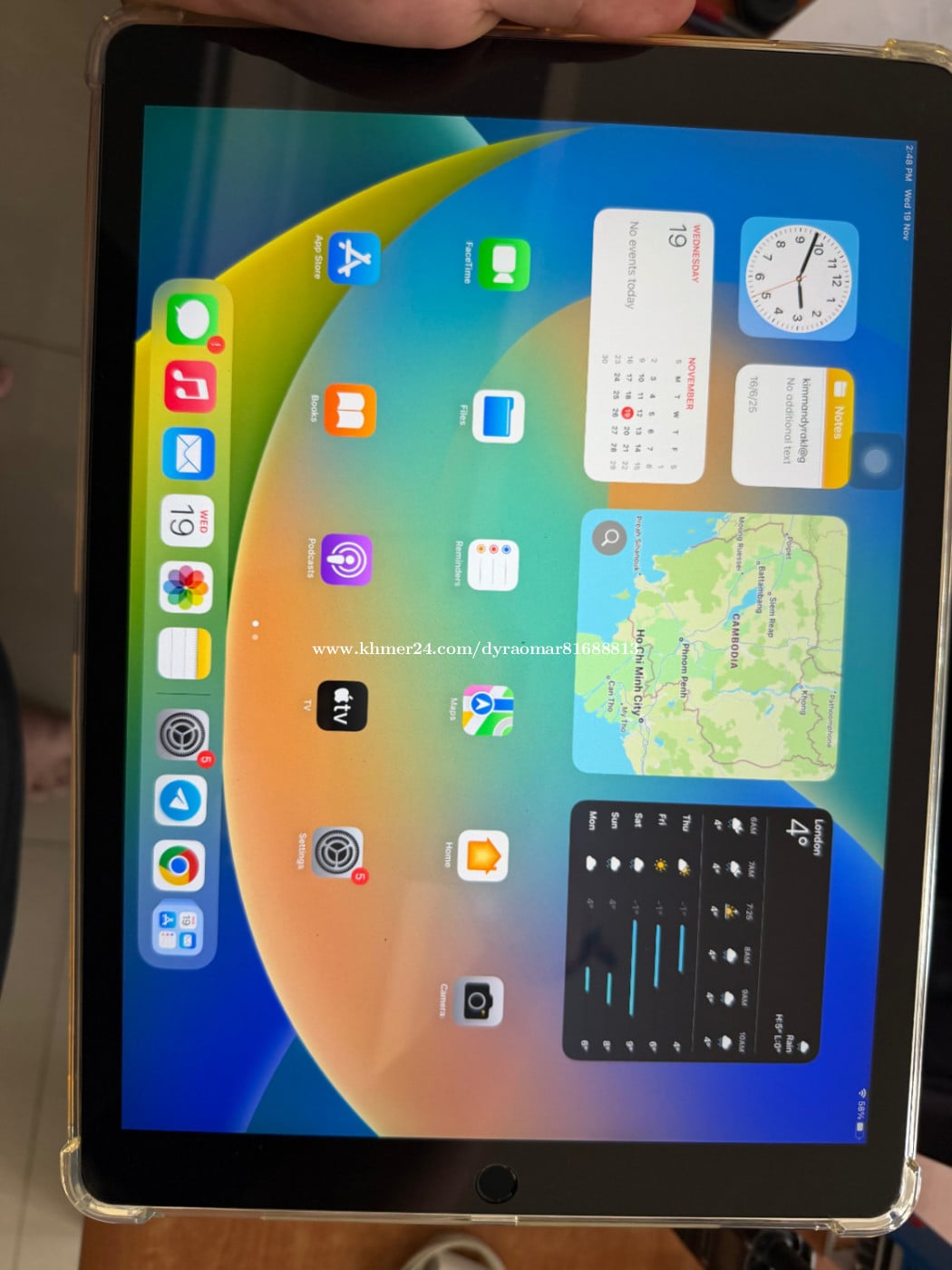 ipad 12.9" 1st generation 2017 ថ្មីណាស់ថ្មនៅ98% cycle count 35 តួនៅស្អាតអ៊ុតស្គត់រហូត ម៉ាសុីនមិនដែរជួសជុល
