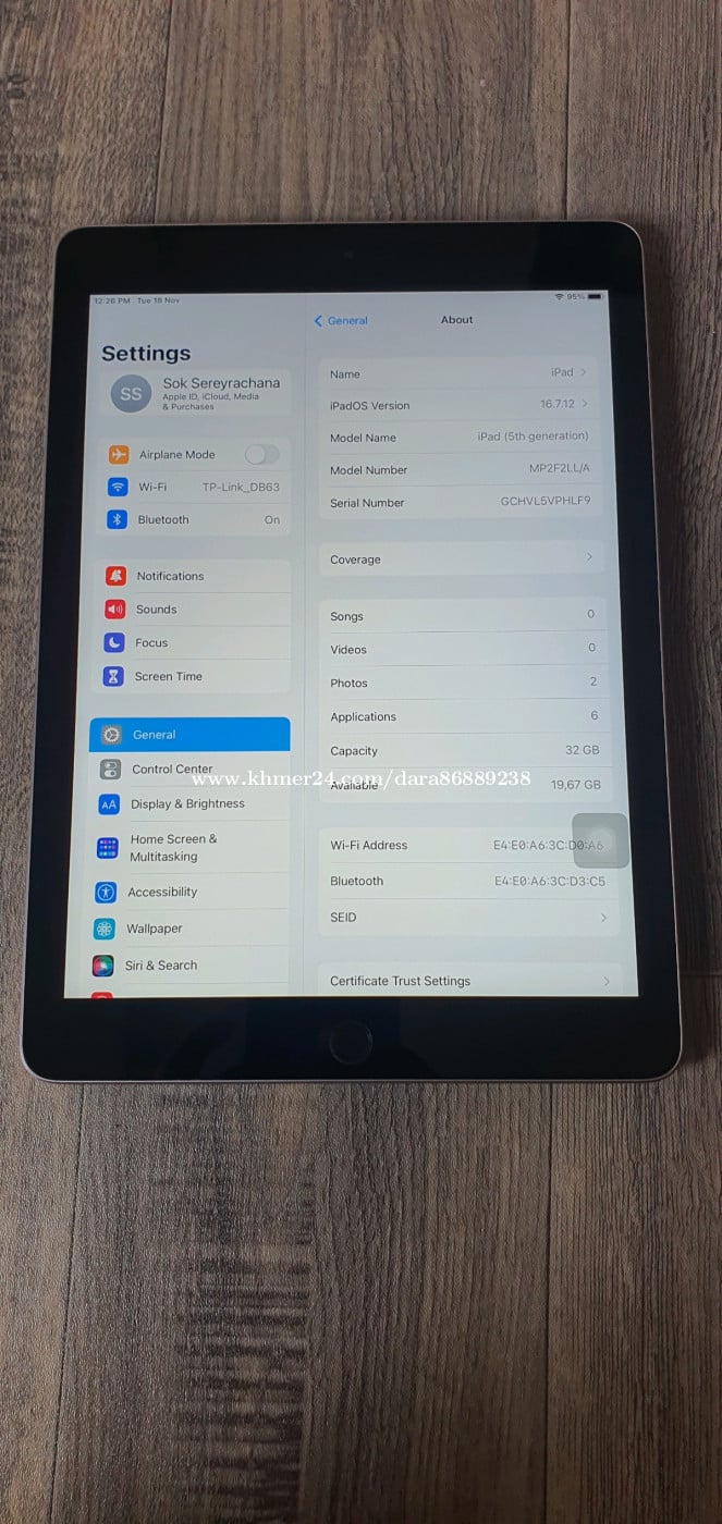 ipad (5th generation) 32Gb wifi សានុំ Original ទាំងអស់ នៅស្អាតខ្លាំង យកមកពីអាមេរិកខ្លួនឯង អត់សូវប្រើទេ