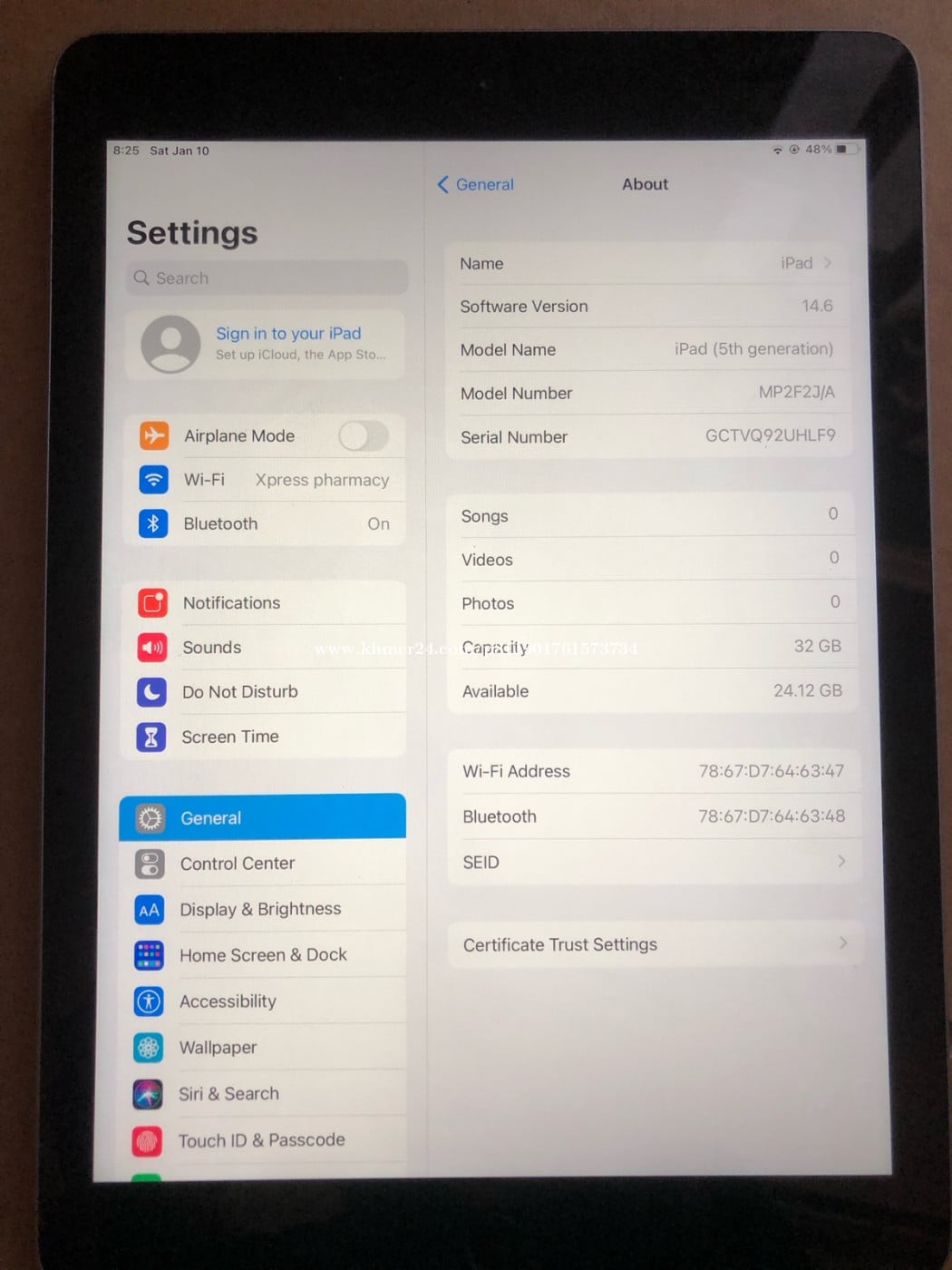 iPad 5th baypas 32G ប្រើ wi fi នៅសាណុំហ្សុីន