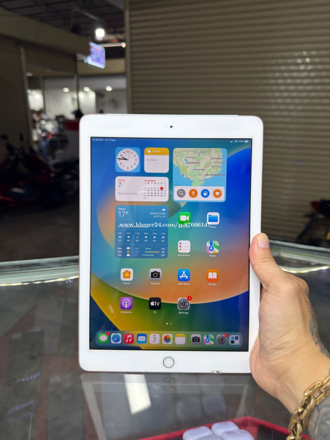iPad 6th Generation Gold J/A HD32GB Phone Condition 97% , Sim & WiFi , ម៉ាស៊ីនហ្សីន