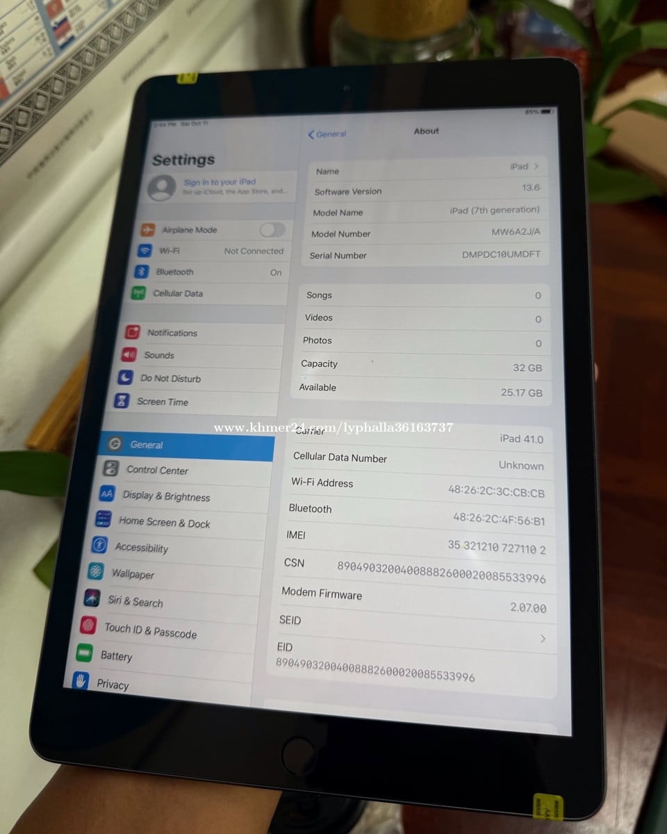 iPad ជំនាន់ទី7 សុំនំហ្សុីន ថ្មមិនសូវកាន់ អេក្រង់មានស្ព័របន្តិច នៅដំណើរappធម្មតា ទិញទុកចាក យូធូបស្តាប់ លក់75$ សៀមរាប តេលេក្រាម 070822xxxClick To Call