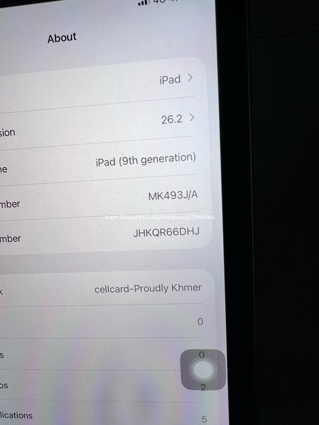 iPad 9 64g sim&fiwi 10.2. សានុំស្រុកក្រៅថ្មកាន់ 98% IOS26.2 155$ 093353xxxClick To Call