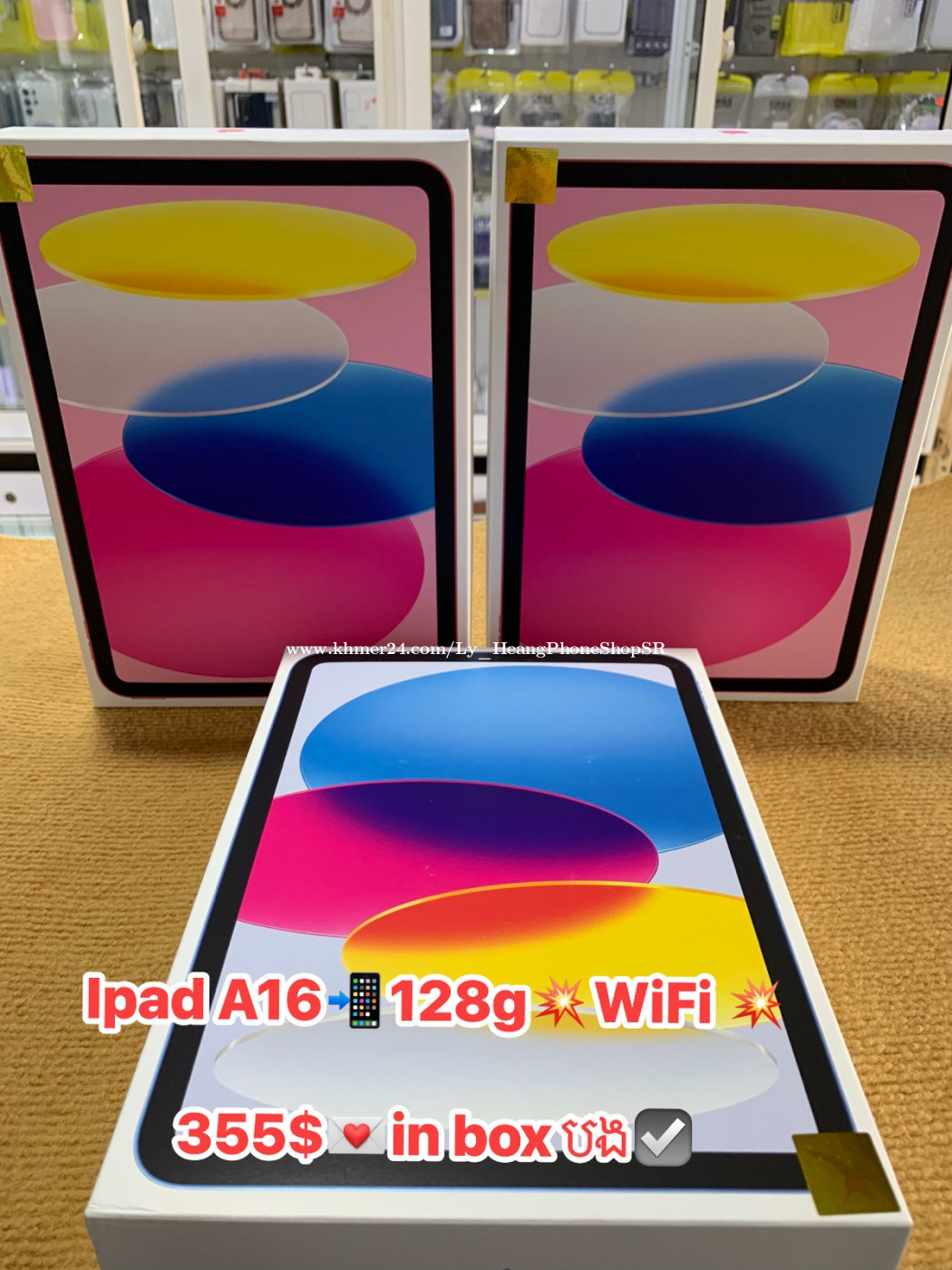 Ipad A16📲128g💥WiFi 💥 355$💌in box បង☑️