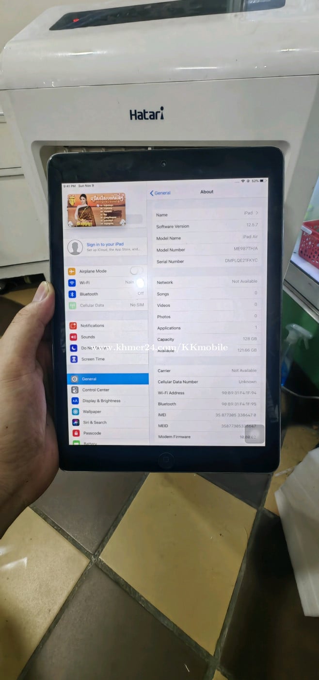 IPad Air 128g Sim+WiFi សានុំស្អាត 99% Free Case