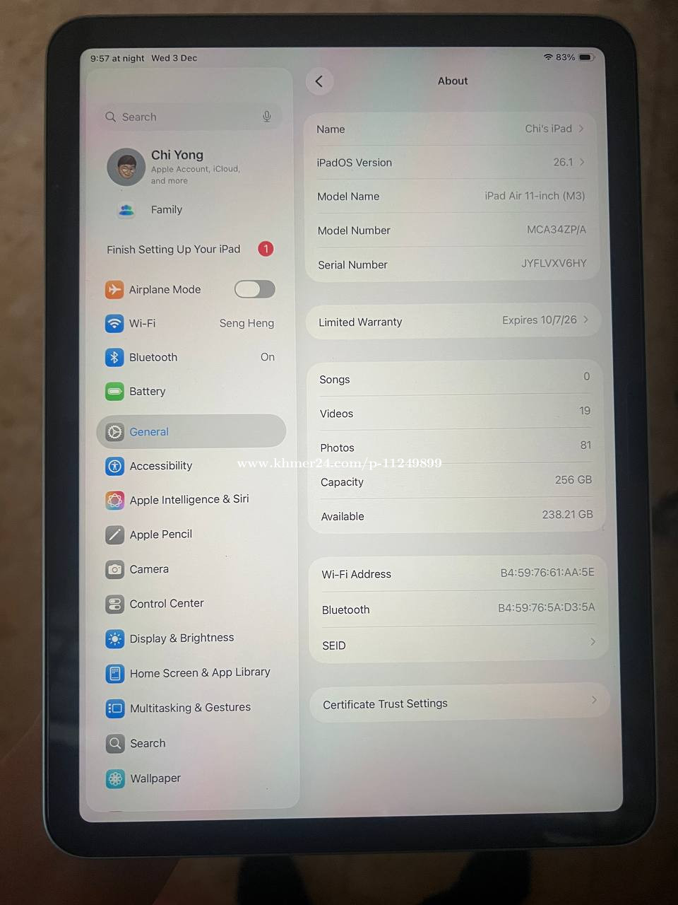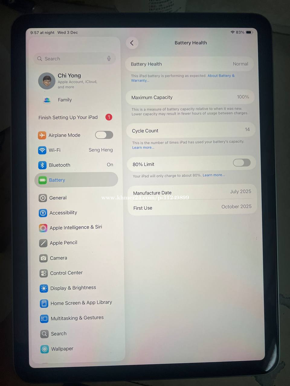 Ipad Air 7th - Chip M3 មាន Apple AI Intelligent ទើបទិញខែតុលានេះ ថ្មី ៩៩%