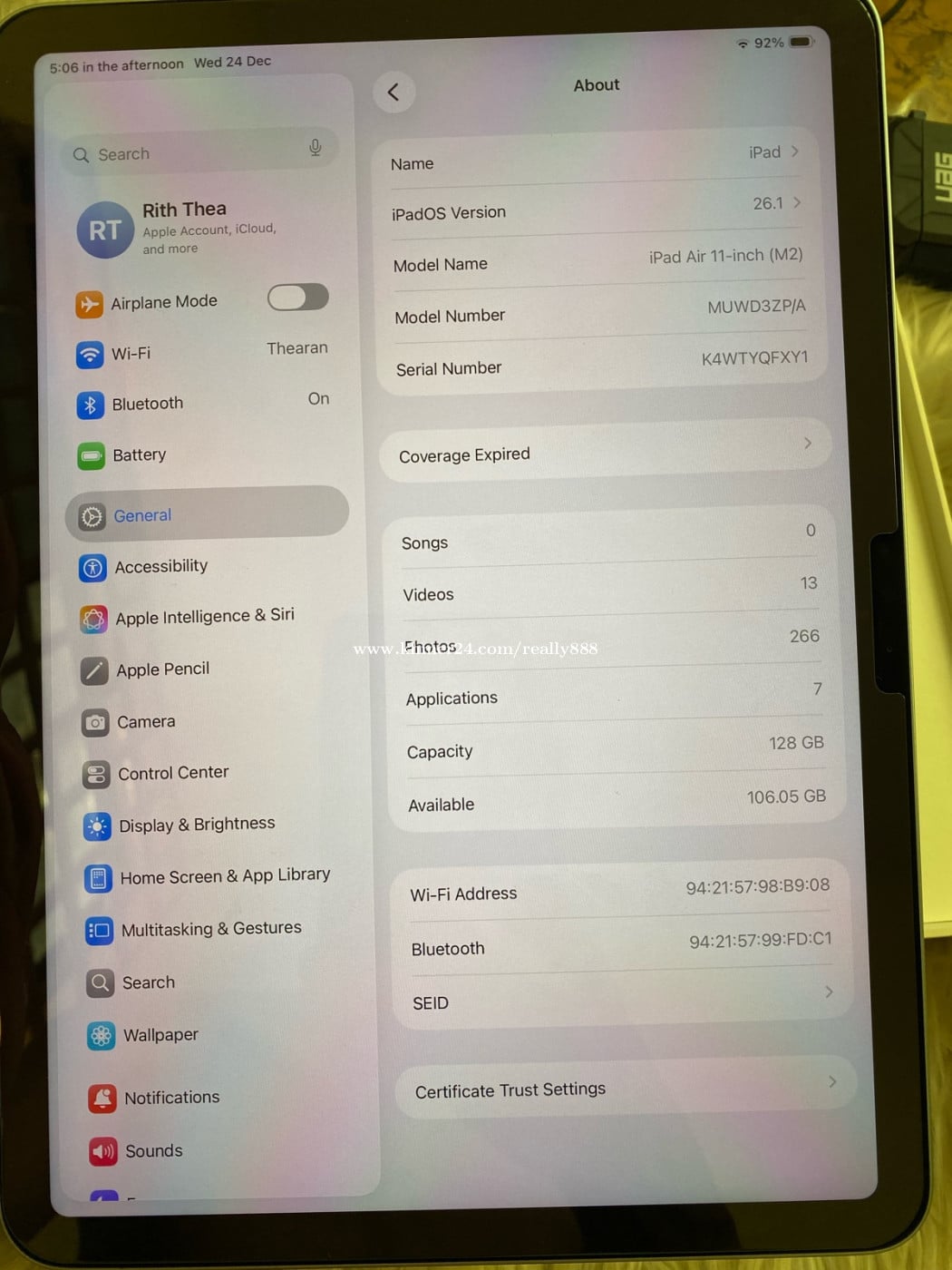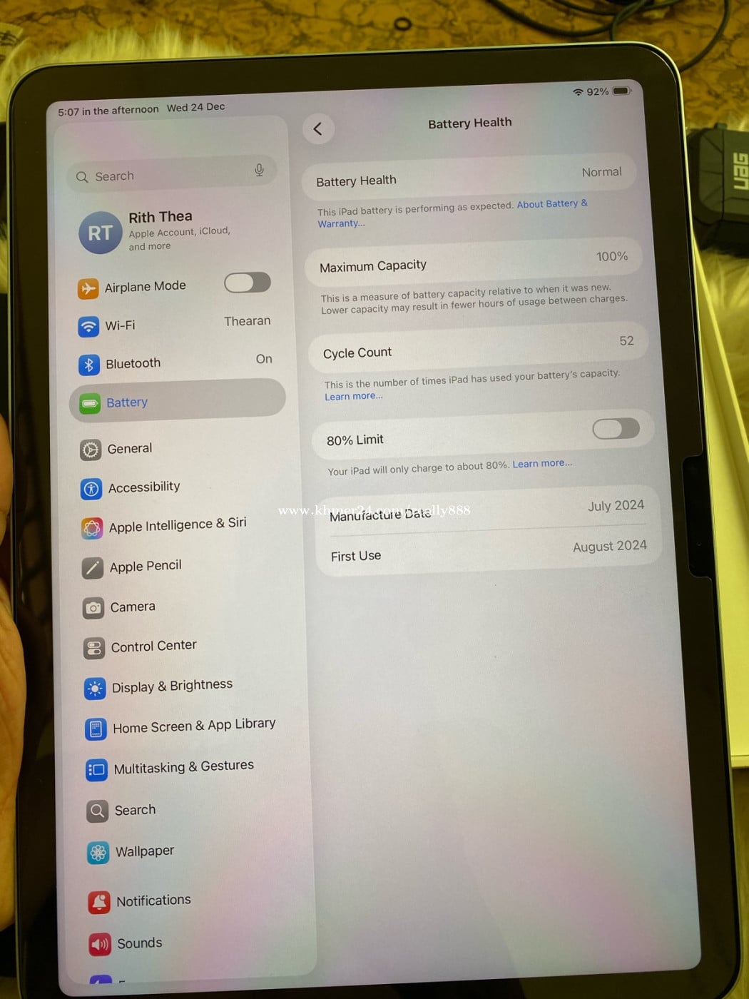 បញ្ជាក់ Ipadនេះសាកបាន52ដង ថ្ម100% តួរលើស្នាមដូចរូប ខ្នង99% អេក្រង់99% ថែម Keyboard 79$អោយមួយ អត់មានឆ្នាំងសាកទេ បើបងៗណាអ្នកទិញពិតប្រាកដសូមខលមកខ្ញុំផ្ទាល់។