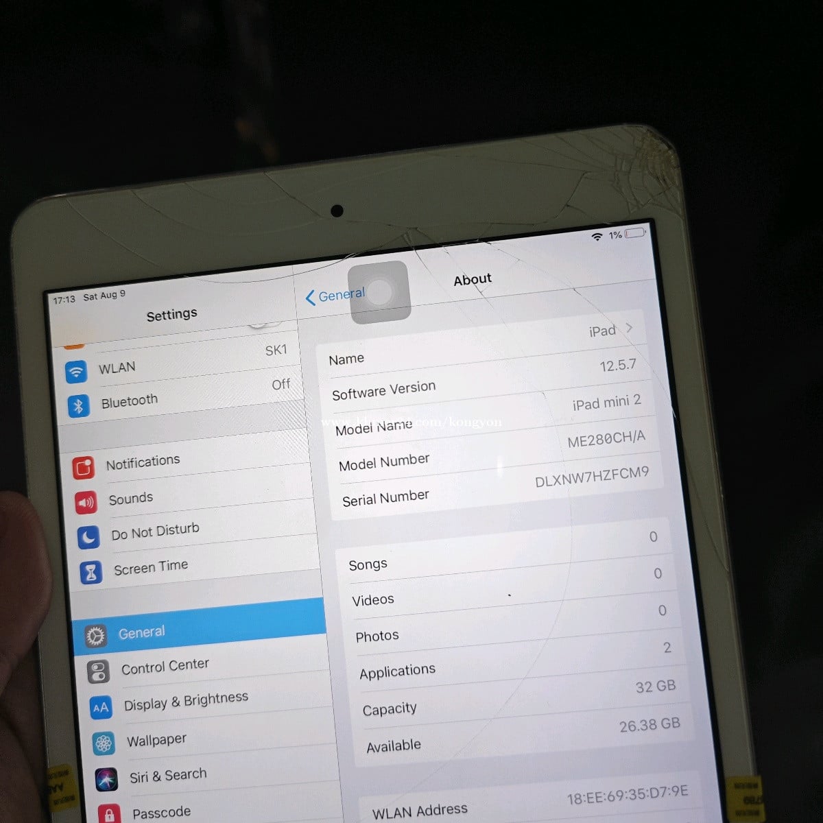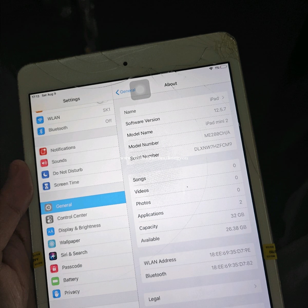 iPad mini 2 32GB Wifi បែកដូចរូប លក់10ម៉ឺន ដាច់ ថែមខេស បិទស្រ្គីន និងឆ្នាំង