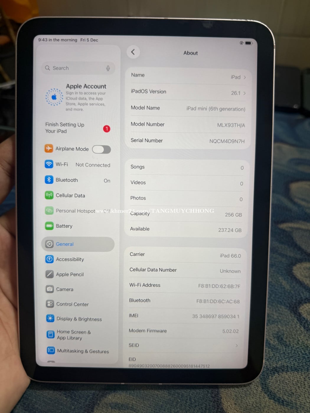 ipad mini 6 256G Sim+Wi-Fi សំណុំសុីន លក់275$