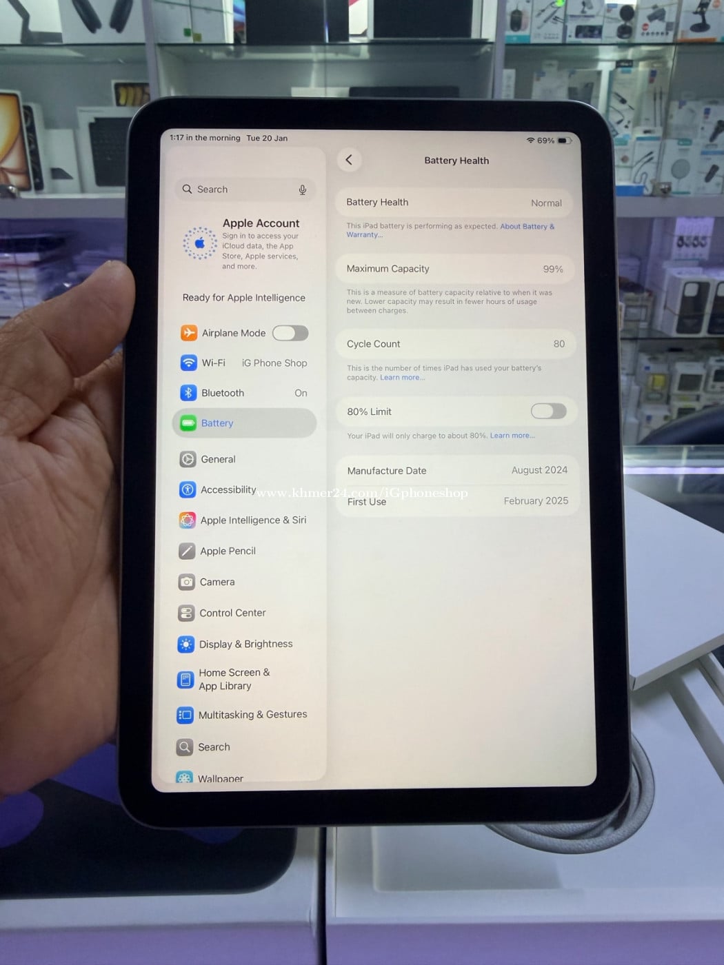 iPad Mini 7 128GB wifi Condition: Good used Color: Grey Model: LL Battery Health: 99% Circle Count: only 80 times Full Set Box & Original Charger Free screen Price: 395$. Chat to Admin: https://t.me/sivhuyou 017565xxxClick To Call. 087770xxxClick To Call. Telegram: https://t.me/iGphoneshop