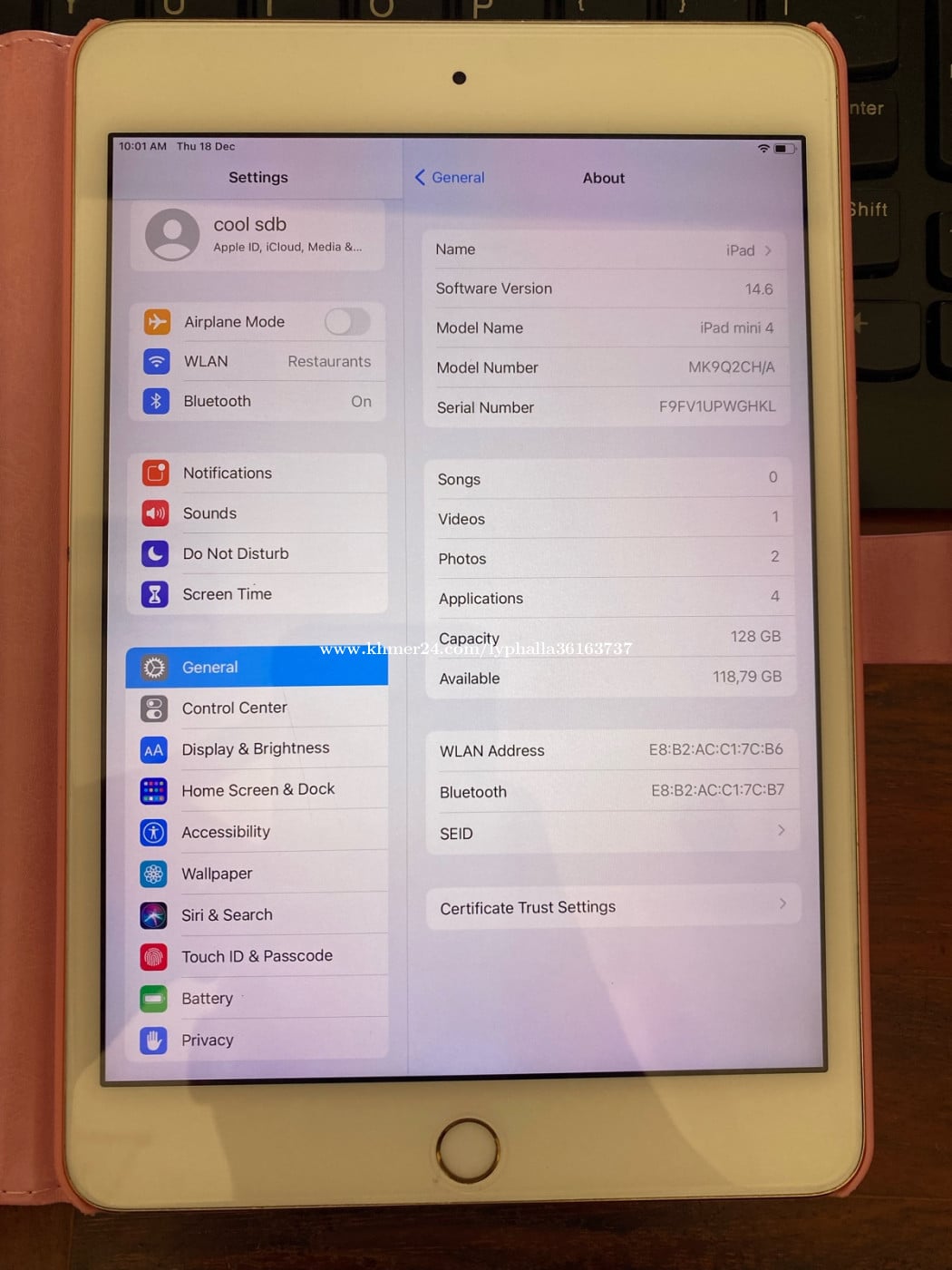 iPad Mini4 128G ប្រើappបានធម្មតា ថ្មនៅកាន់ នៅមានក្រេនក្រយៅដៃ Facebook TikTok YouTube ប្រើបានធម្មតា លក់75$ សៀមរាប តេលេក្រាម •••070822xxxClick To Call