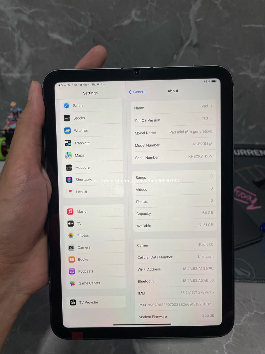 iPad Mini6 មួយទឹកសំនុំស៊ីន ក្រៅស្រុកស្អាត Condition: 99% Storage: 64GB Sim+Wifi Battery Health: 100% សាកថ្ម: 65 ដង Color: Space gray Code: LL/A តម្លៃ 329$ Free case screen ឆ្នាំងសាក ធានា 1ខែ Contact: 0768083xxxClick To Call 0968083xxxClick To Call telegram: 0768083xxxClick To Call Telegram channel: https://t.me/padstorepluschannel អាសយដ្ឋាន៖ ផ្លូវ 192 ទឹកល្អក់3 ខណ្ឌទួលគោក រាជធានីភ្នំពេញ ផែនទី https://maps.app.goo.gl/jNUNDrE4MHBmSJSh6?g_st=ipc