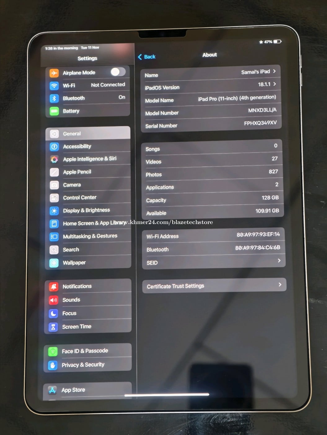 🍎Apple iPad Pro 11-inch (4th Generation)🍎 ·Year: 2022 ·Chip: Apple M2 · Storage: 128GB · Color: Space Gray · Connectivity: Wi-Fi 📌 iPad only 💲Price:649$ (99%) For more:https://t.me/Blazetechstore/230/2532?single