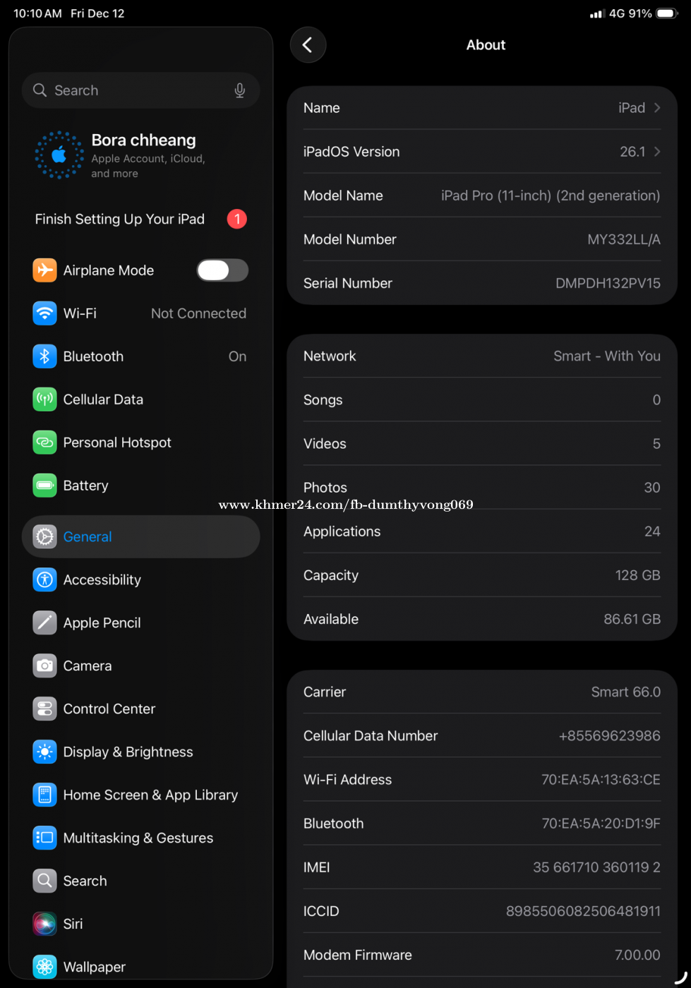 iPad Pro second Generation LLA 128g ស្ព័រអេក្រង់ពេលពណ៌ស ដំណើរការល្អ Free game GTA មួយឈុត 087497xxxClick To Call